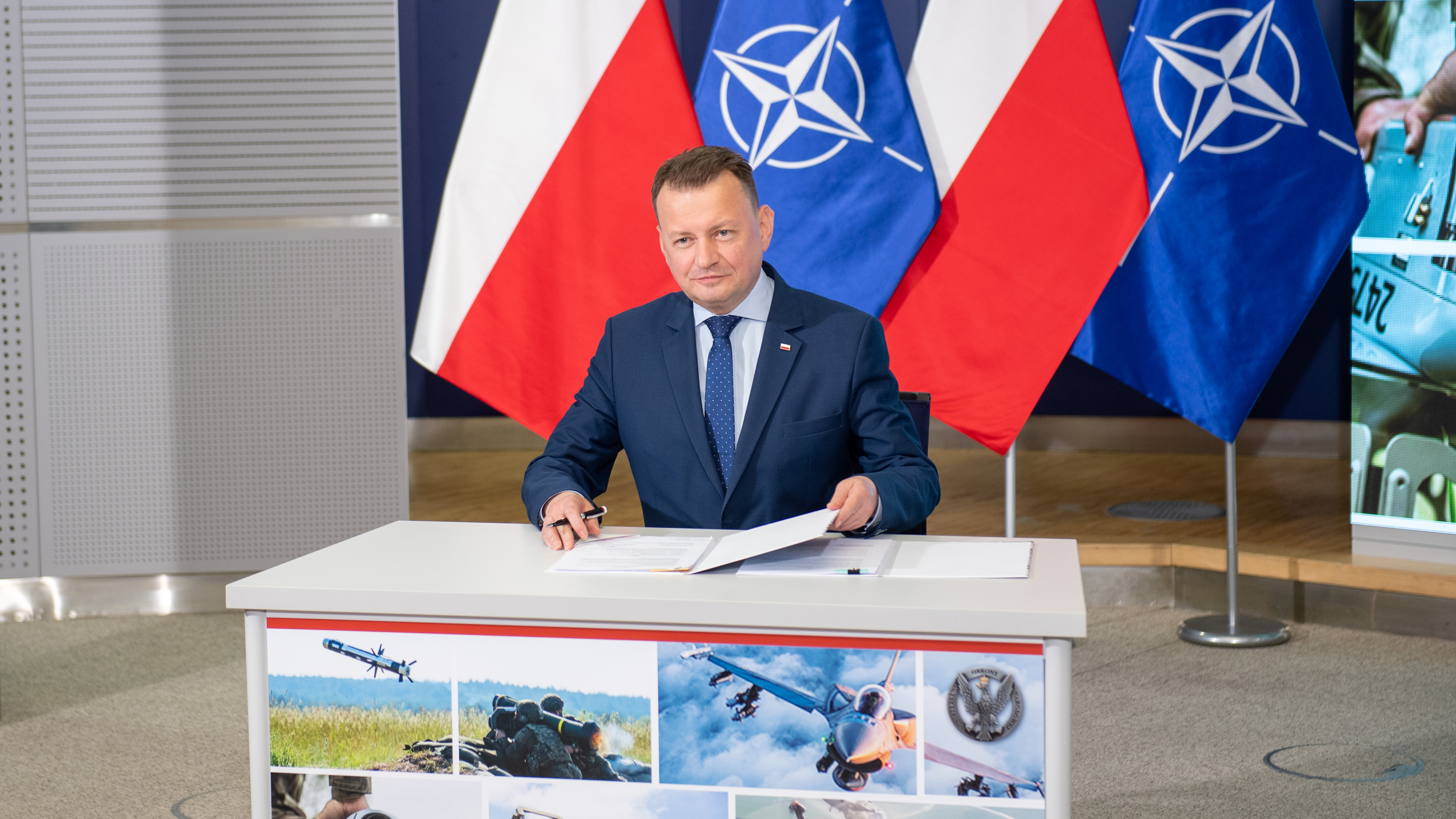„Przed chwilą podpisaliśmy umowę z Bankiem Gospodarstwa Krajowego w sprawie obsługi finansowo-księgowej Funduszu Wsparcia Sił Zbrojnych. Fundusz powstał na podstawie ustawy o obronie Ojczyzny. To bardzo ważna ustawa dla polskich Sił Zbrojnych. To bardzo ważna ustawa dla bezpieczeństwa Rzeczypospolitej Polskiej. Są to przepisy, które stanowią fundament rozwoju Sił Zbrojnych Rzeczypospolitej Polskiej. A że o bezpieczeństwo trzeba dbać, wiemy o tym doskonale. Ci, którzy nie wierzyli przekonali się jeżeli obserwują to, co dzieje się za naszą wschodnią granicą" - powiedział minister Mariusz Błaszczak po podpisaniu umowy dotyczącej obsługi Funduszu Wsparcia Sił Zbrojnych.