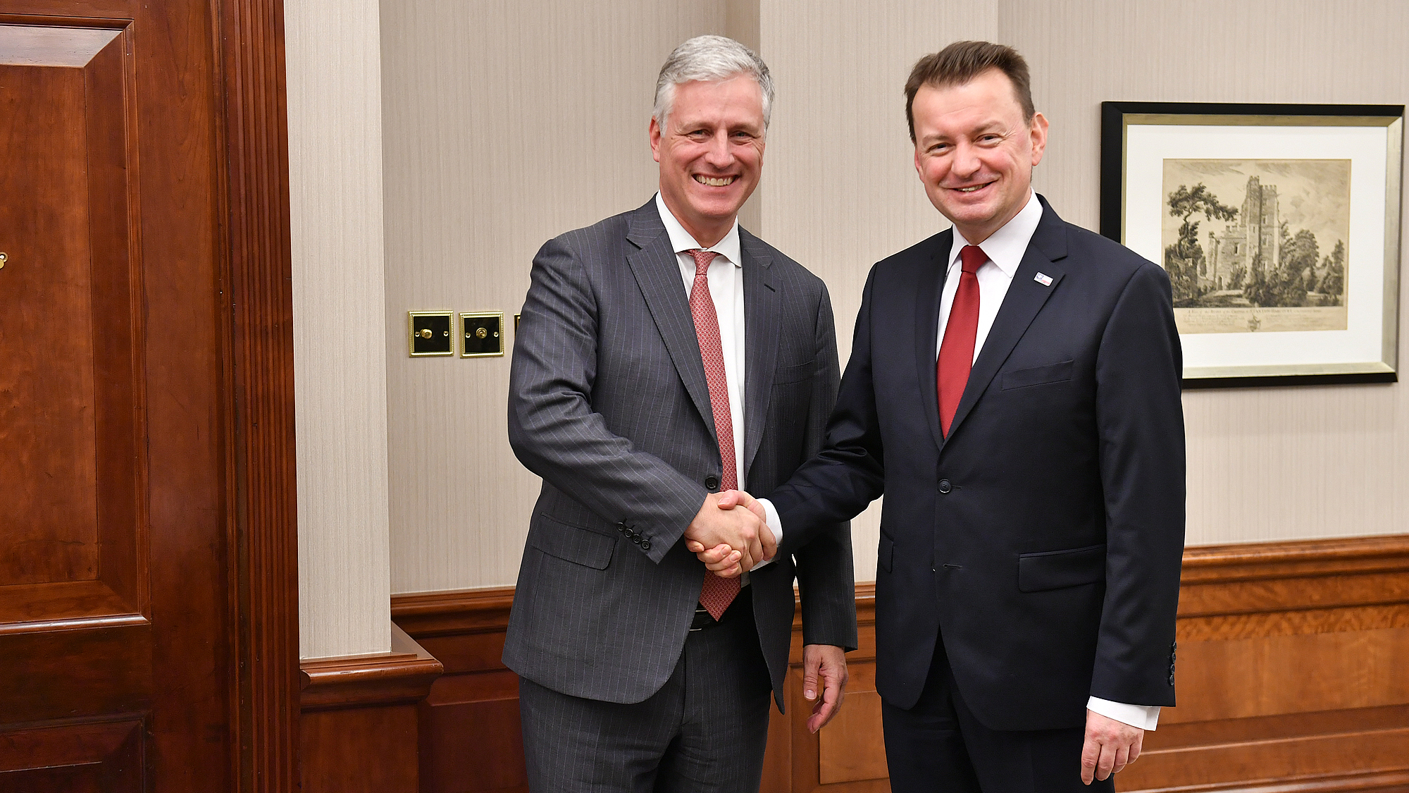 - Rozmawialiśmy o relacjach polsko – amerykańskich. Rozmawialiśmy o wypełnieniu treścią deklaracji podpisanych przez prezydentów Dudę i Trumpa, o zwiększeniu liczebności wojsk amerykańskich w Polsce, rozbudowie infrastruktury służącej obronności – powiedział Mariusz Błaszczak, minister obrony narodowej po spotkaniu z Robertem C. O’Brienem, Doradcą Prezydenta USA ds. bezpieczeństwa narodowego. Spotkanie odbyło się 3 grudnia w Londynie.