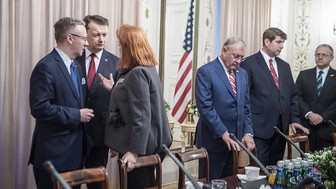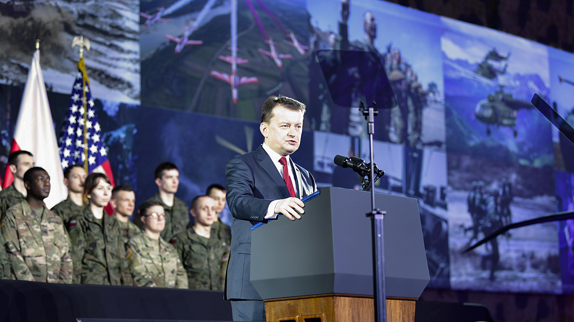 Minister Błaszczak zaznaczył, że jego zadaniem, oprócz modernizacji Wojska Polskiego, jest także doprowadzenie do ściślejszej współpracy z sojusznikami, w tym z USA. - Dzisiejszy dzień zapisze się w historii Polski ze względu na wydarzenia międzynarodowe, o randze światowej, dotyczące właśnie zwiększenia pozycji na arenie międzynarodowej naszego kraju, Polski.