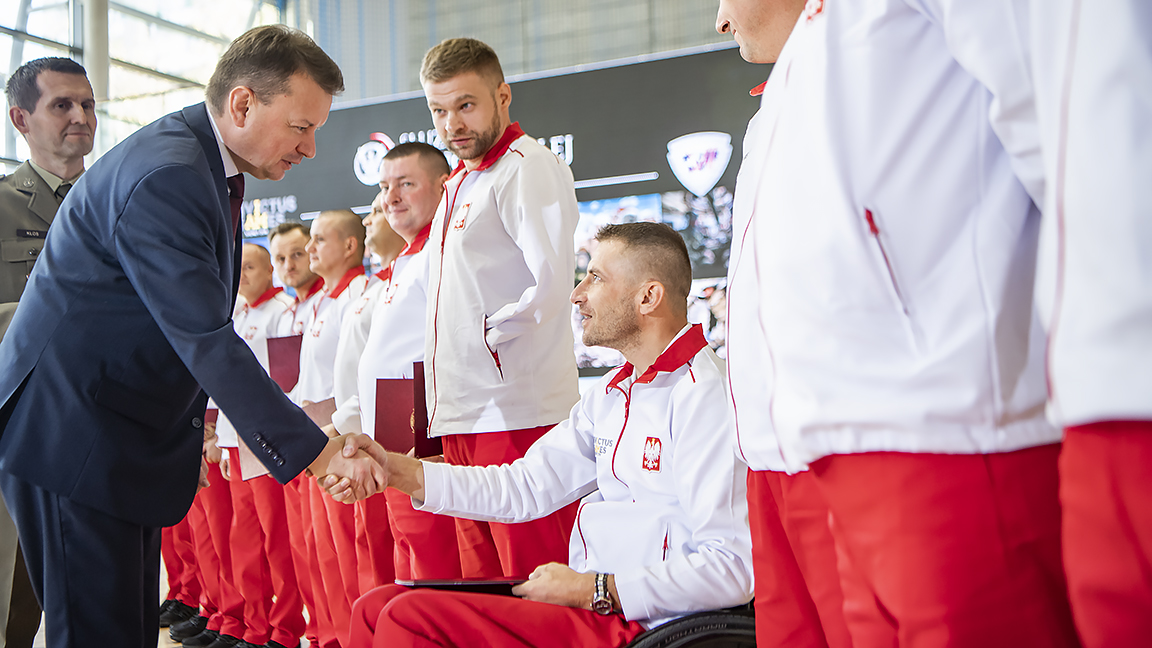 Minister Błaszczak podczas spotkania podziękował wszystkim, którzy pomagali polskim zawodnikom w przygotowaniach. Szczególne słowa uznania za codzienne wsparcie skierował do rodzin i bliskich żołnierzy. – Dziękuję Waszym rodzinom za wsparcie, którego udzielają na co dzień i które jest niezwykle ważne. Ważne jest to, żeby ludzie będący bohaterami tak jak Wy, którzy walczyli o bezpieczeństwo Polski i świata w życiu codziennym odczuwali, że jesteśmy z nimi – mówił szef MON.