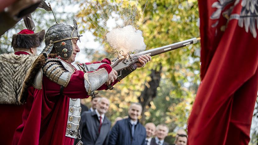 Uroczystość zakończyło złożenie wieńców m.in. przez szefa MON i przedstawicieli Fundacji Polskiej Grupy Zbrojeniowej przed symbolicznym grobem Rocha Kowalskiego oraz salwa honorowa.