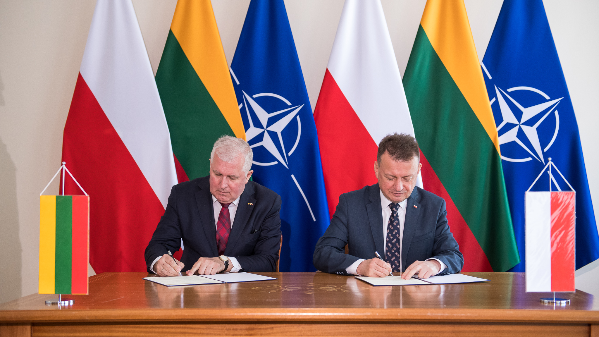 Po rozmowach plenarnych ministrowie obrony Polski i Litwy podpisali wspólne stanowisko dotyczące rozwoju dalszej współpracy wojskowej na rzecz bezpieczeństwa.