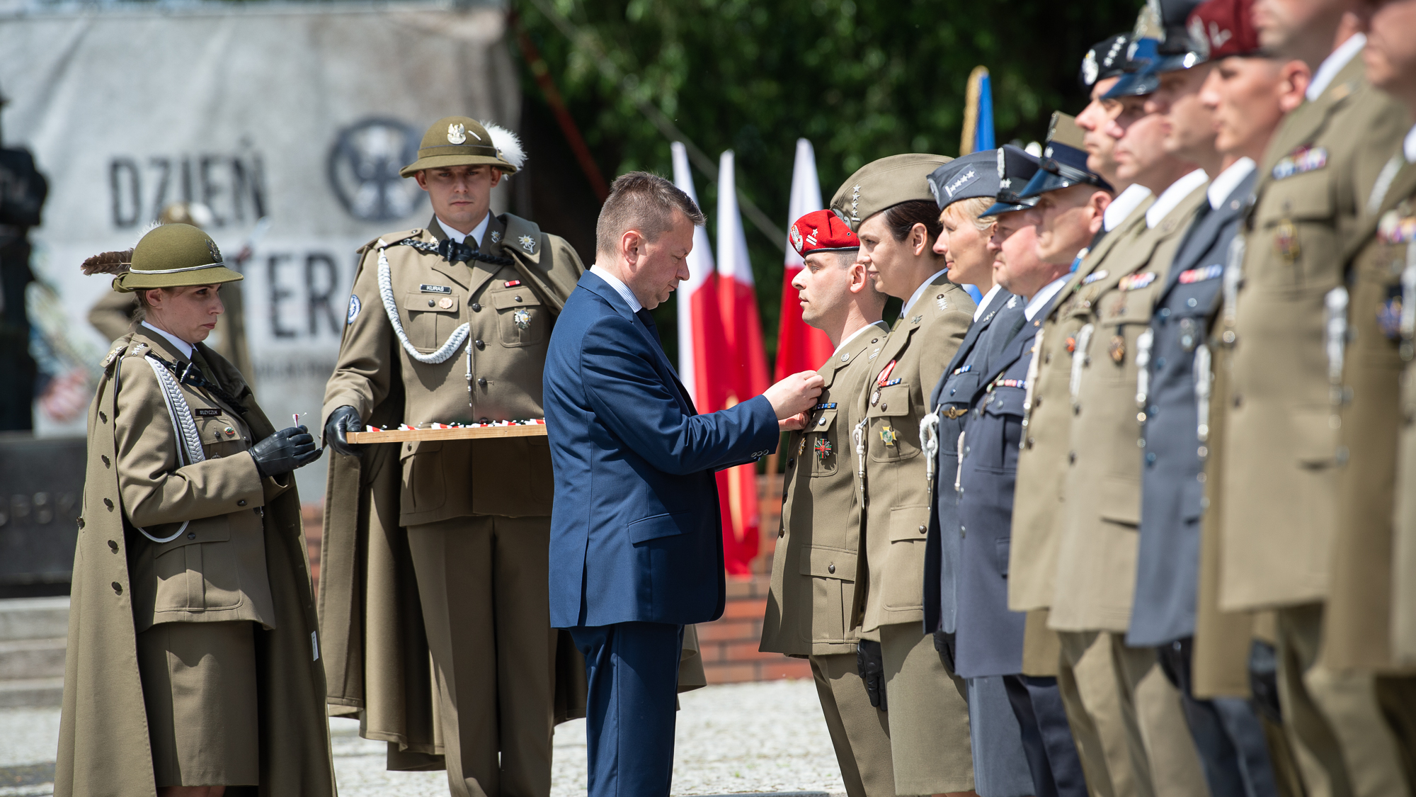 - Dziękuję Wam za codzienną służbę, za godne reprezentowanie Polski poza granicami kraju. Dziękuję Wam za postawę będącą synonimem odwagi, poświęcenia i godności, za to, że tak pięknie reprezentujecie Polskę poza granicami kraju. - powiedział Mariusz Błaszczak, minister obrony narodowej podczas Centralnych Obchodów Dnia Weterana.