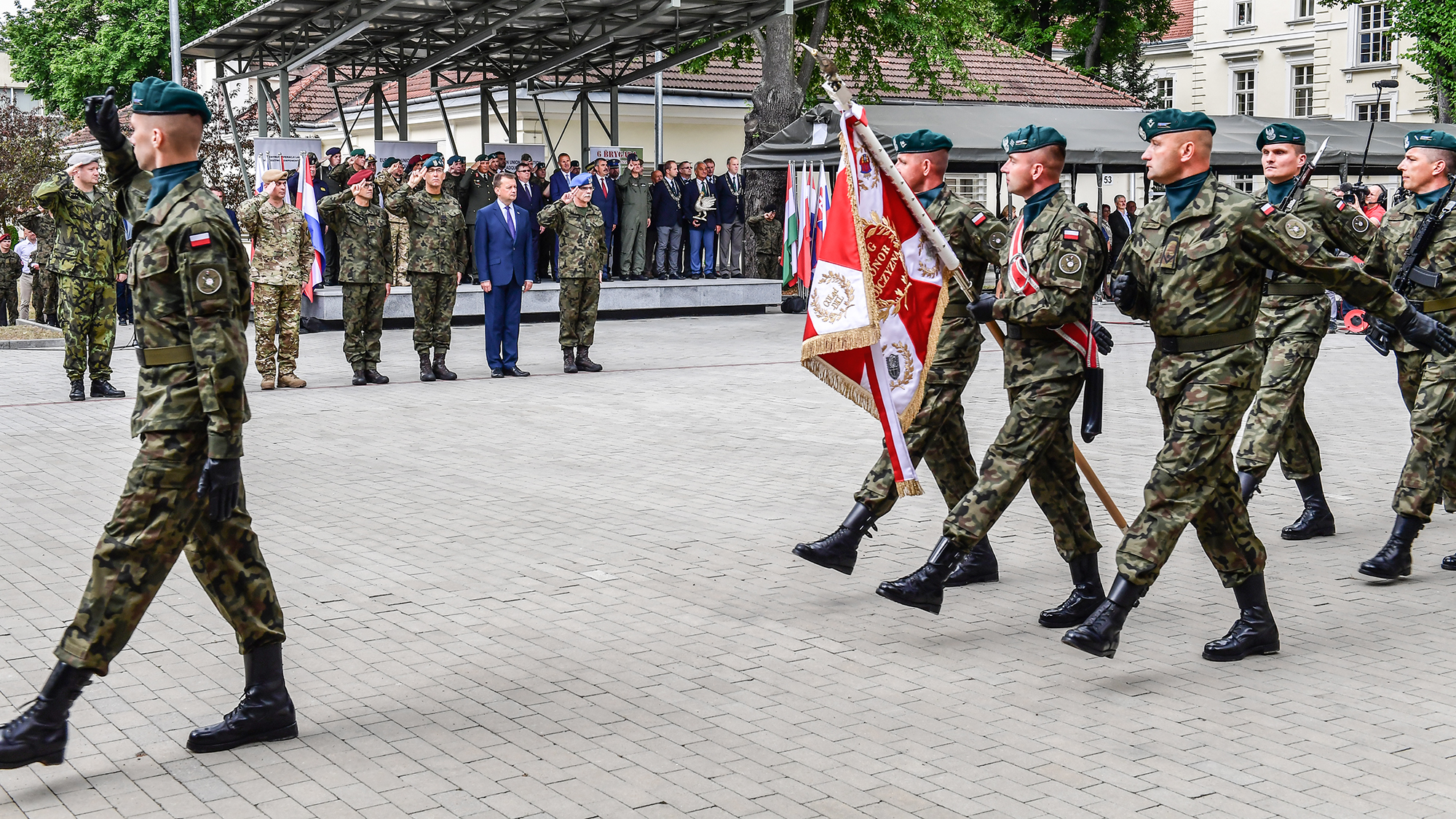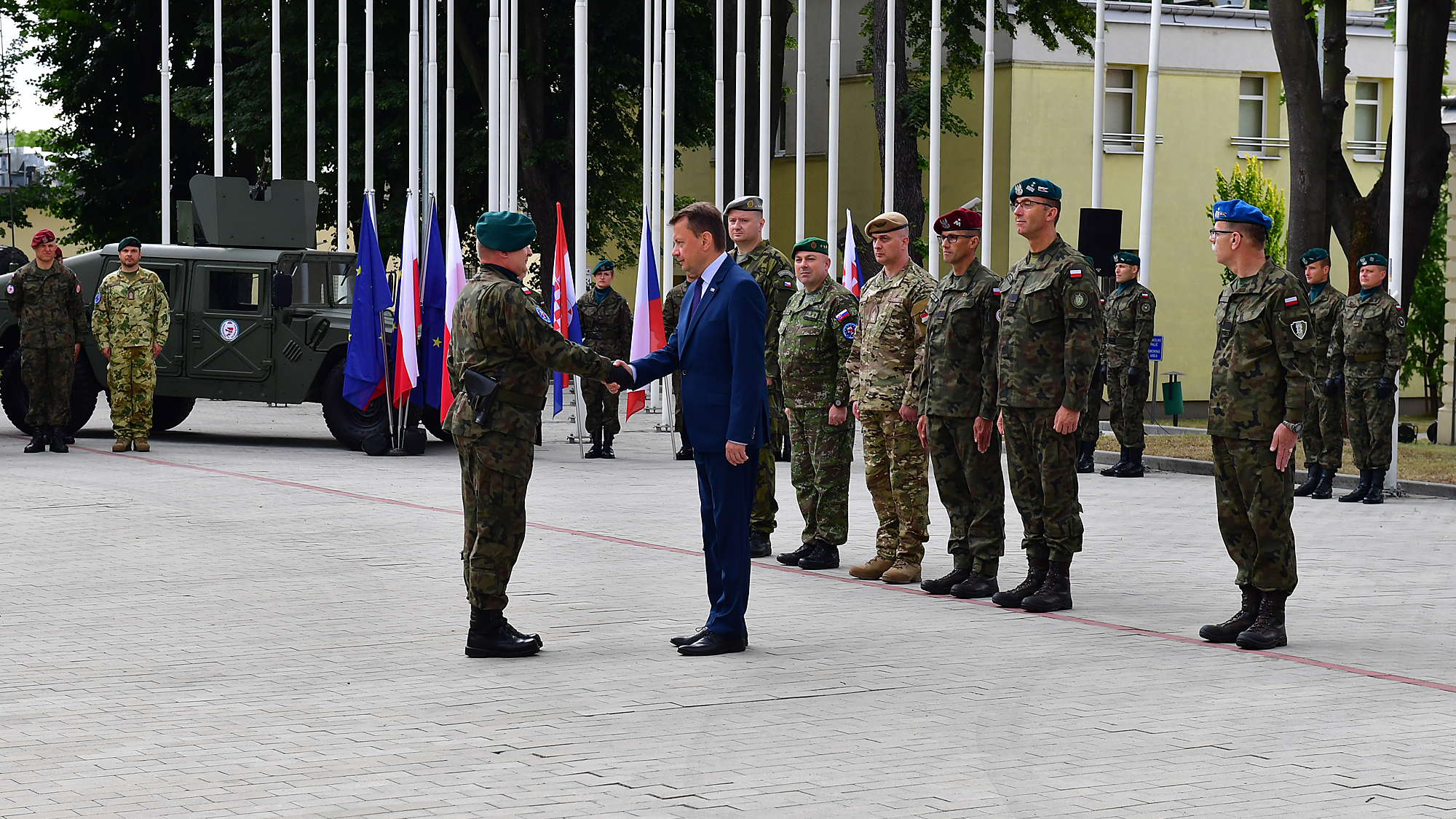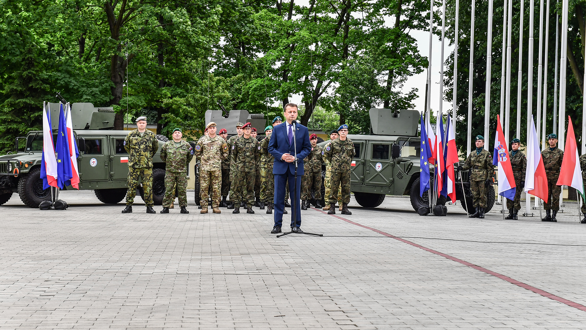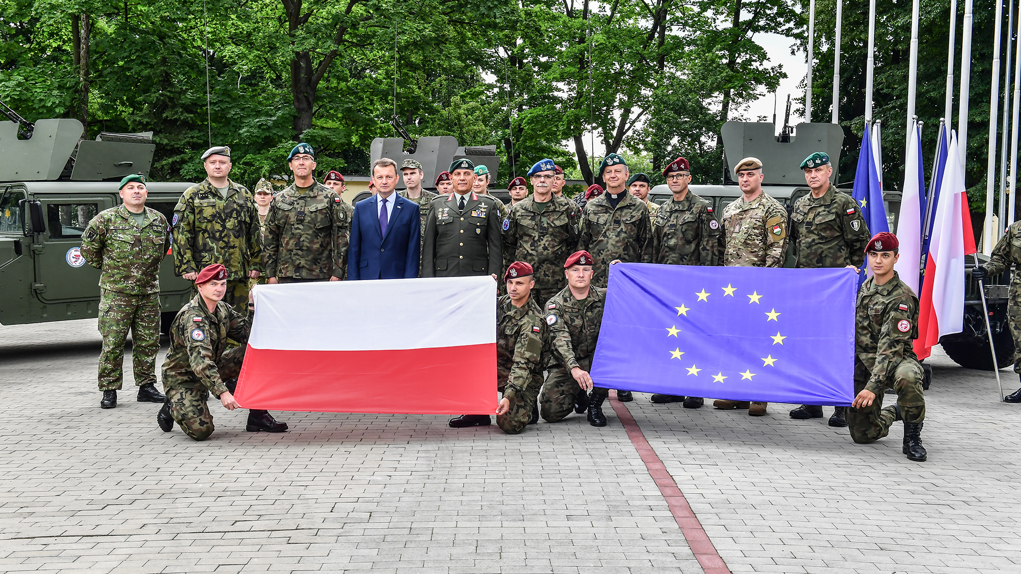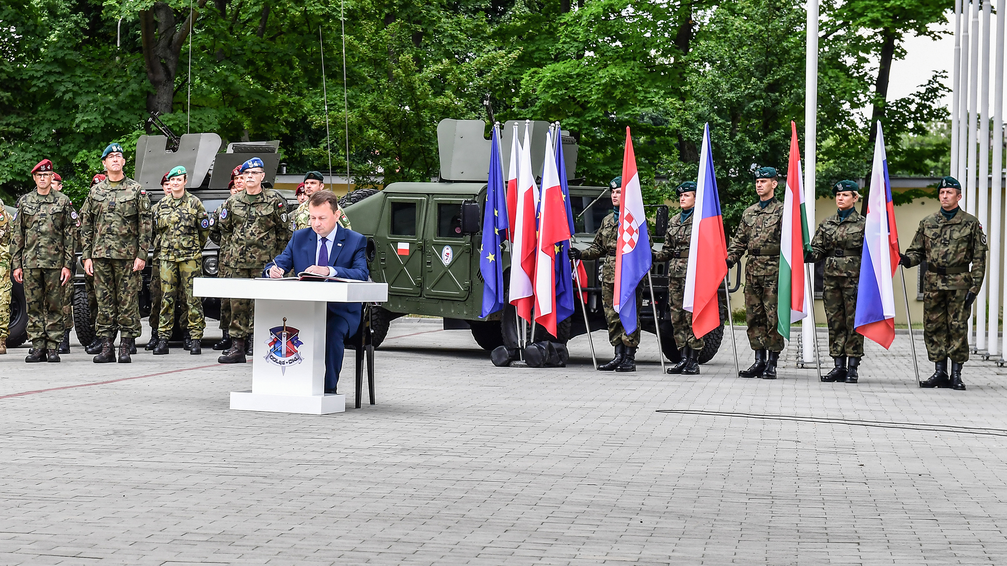 28 czerwca br. Mariusz Błaszczak, minister obrony narodowej wziął udział w uroczystości rozpoczęcia dyżuru Dowództwa Operacji Unii Europejskiej (EU OHQ BG V4), FHQ i Grupy Bojowej UE. W uroczystościach udział wzięli także przedstawiciele innych państw należących do Grupy Bojowej UE.