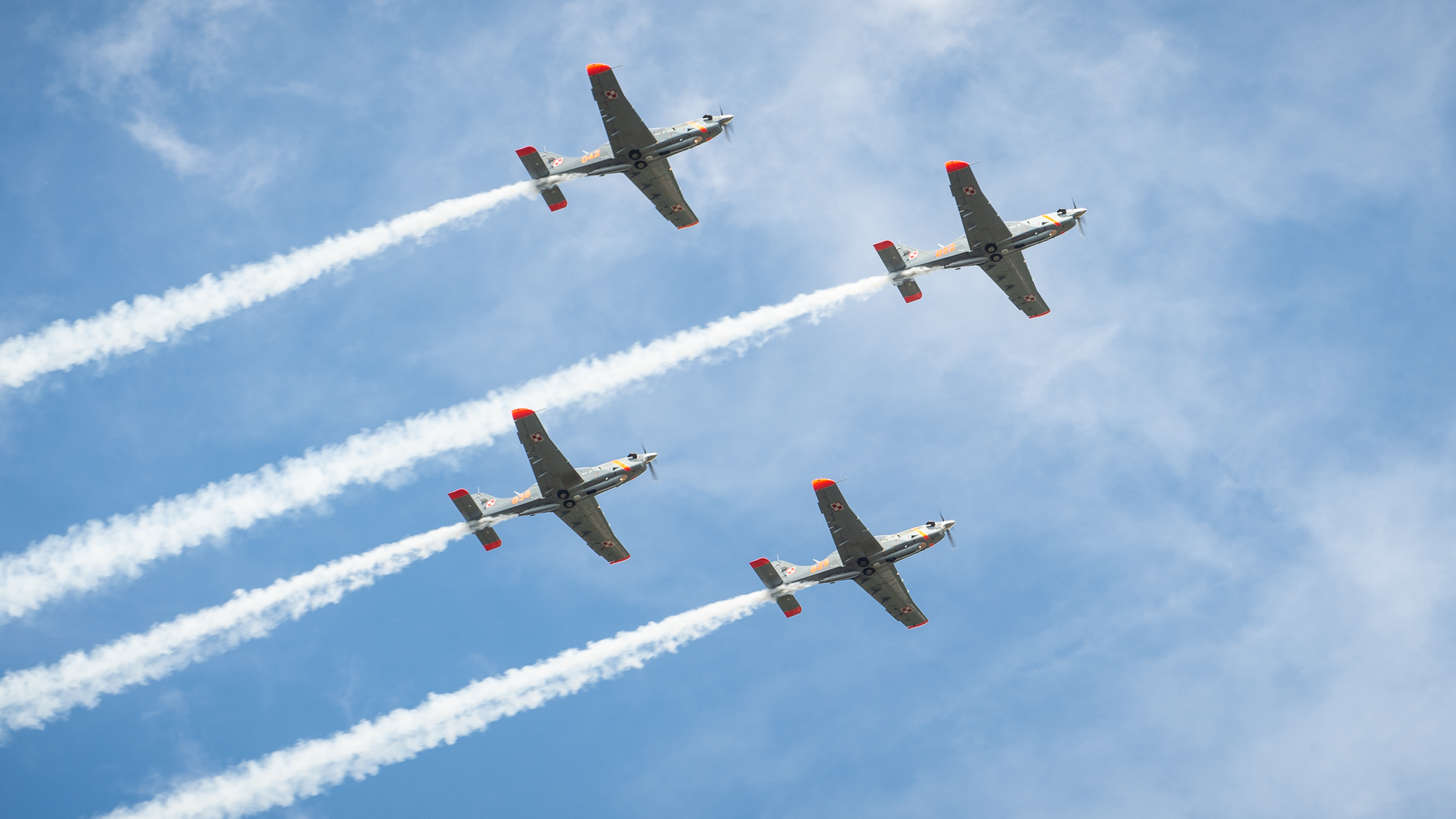 Defiladę powietrzną rozpoczął przelot śmigłowców. Wśród nich najnowsze śmigłowce Policji S-70i Black Hawk oraz śmigłowce Wojska Polskiego: Mi–2, W–3 Sokół, Mi-17 i Mi – 8, samoloty z biało- czerwoną szachownicą - F–16, TS–11 Iskra, M–28 Bryza, C–295M, C–130, M–346. Nad głowami gości przeleciało prawie 80 statków powietrznych – samolotów i śmigłowców. Pokazy zakończył przelot samolotów przeznaczonych do transportu najważniejszych osób w państwie: G550 oraz B737 w eskorcie myśliwców.