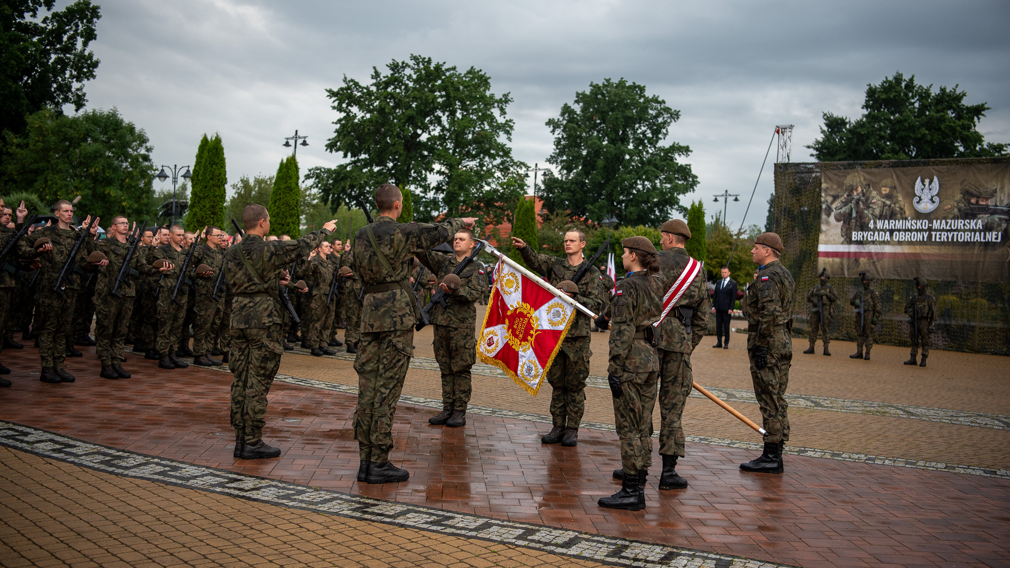 - 4 Brygada Obrony Terytorialnej należy do tych, które bardzo dynamicznie się rozwijają. Składa się z 5 batalionów. Szczególnie ważne są te bataliony, które są zorganizowane bezpośrednio przy granicy z obwodem królewieckim. Chodzi o to, żeby wzmocnić granicę z tej strony. Dlatego zdecydowaliśmy o tym, żeby pobudować zaporę na granicy, zdecydowaliśmy o tym, żeby wzmocnić granicę, żeby zapewnić Polsce bezpieczeństwo. W Ełku obok niejako Wojsk Obrony Terytorialnej powstaje również jednostka wojsk operacyjnych. Zresztą w całym województwie warmińsko – mazurskim powstają nowe jednostki. Rozwija się wojsko dlatego, żeby Polska była bezpieczna. Stąd też na przykład rozbudowujemy 1 Mazurską Brygadę Artylerii. To brygada bardzo ważna. Artyleria dziś odgrywa kluczową rolę. Wyciągamy wnioski z tego, co dzieje się za naszą wschodnią granicą. Wzmacniamy Wojsko Polskie, aby odstraszyć agresora. Po to, żeby agresor nie poważył się zaatakować naszą Ojczyznę