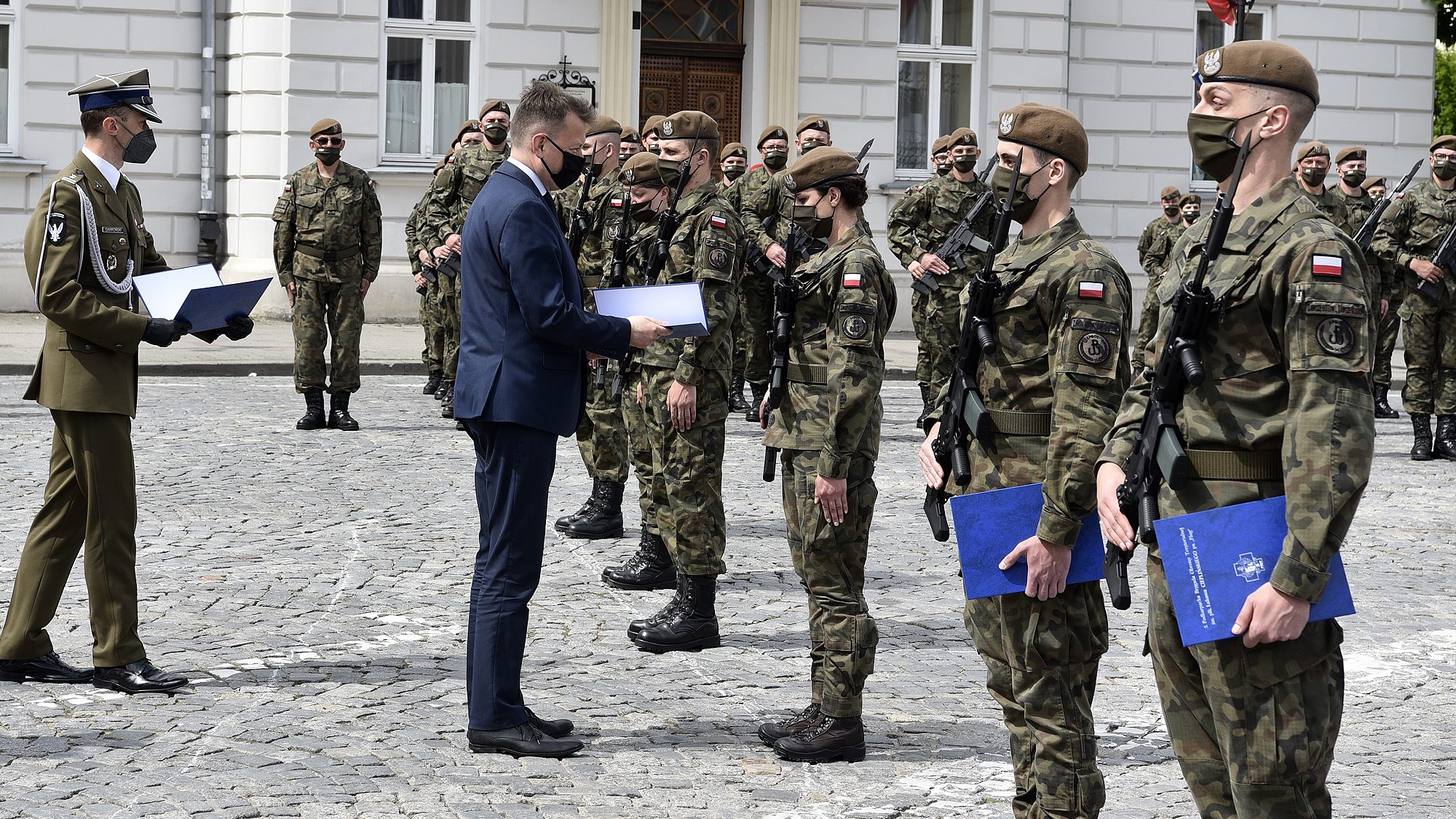 - Przed chwilą 75 żołnierzy Wojsk Obrony Terytorialnej złożyło przysięgę. To ważna chwila dla nich, ale także ważna chwila dla Wojska Polskiego. Terytorialsi liczą już 29 tys. żołnierzy. To najmłodsza formacja Wojska Polskiego dynamicznie się rozwijająca. (…) Żołnierze Wojska Polskiego są zawsze gotowi, są zawsze blisko tych, którzy potrzebują pomocy - powiedział Mariusz Błaszczak, minister obrony narodowej podczas ceremonii złożenia przysięgi wojskowej przez przyszłych żołnierzy Wojsk Obrony Terytorialnej.