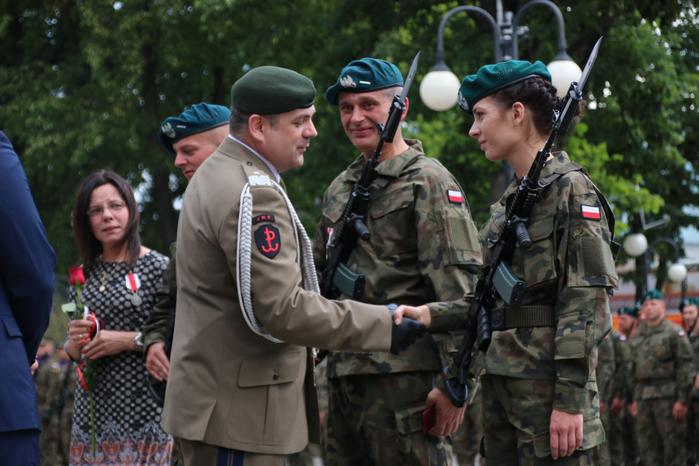 - Spotykamy się w dniu niezwykłym, w dniu który zmienił Wasze życie. Złożyliście przysięgę wojskową, dzięki czemu staliście się częścią Sił Zbrojnych RP. Jestem przekonany, że każdy kto stał przed sztandarem i wypowiadał słowa tej roty, a jestem pewny, że na tym rynku jest nas wielu, którzy mieli ten zaszczyt, każdy pamięta ten dzień do końca życia. Nie chodzi tylko o wzruszenie i związane z tym wspomnienie. Przysięga wojskowa to zobowiązanie podjęte na całe życie. Zobowiązanie służby Bogu i Polsce, zobowiązanie służby krajowi. To jest zobowiązanie, że jeżeli zajdzie taka potrzeba, każdy z nas z bronią w ręku stanie, żeby bronić granic Rzeczpospolitej Polskiej - powiedział w swoim wystąpieniu sekretarz stanu w MON Michał Dworczyk.