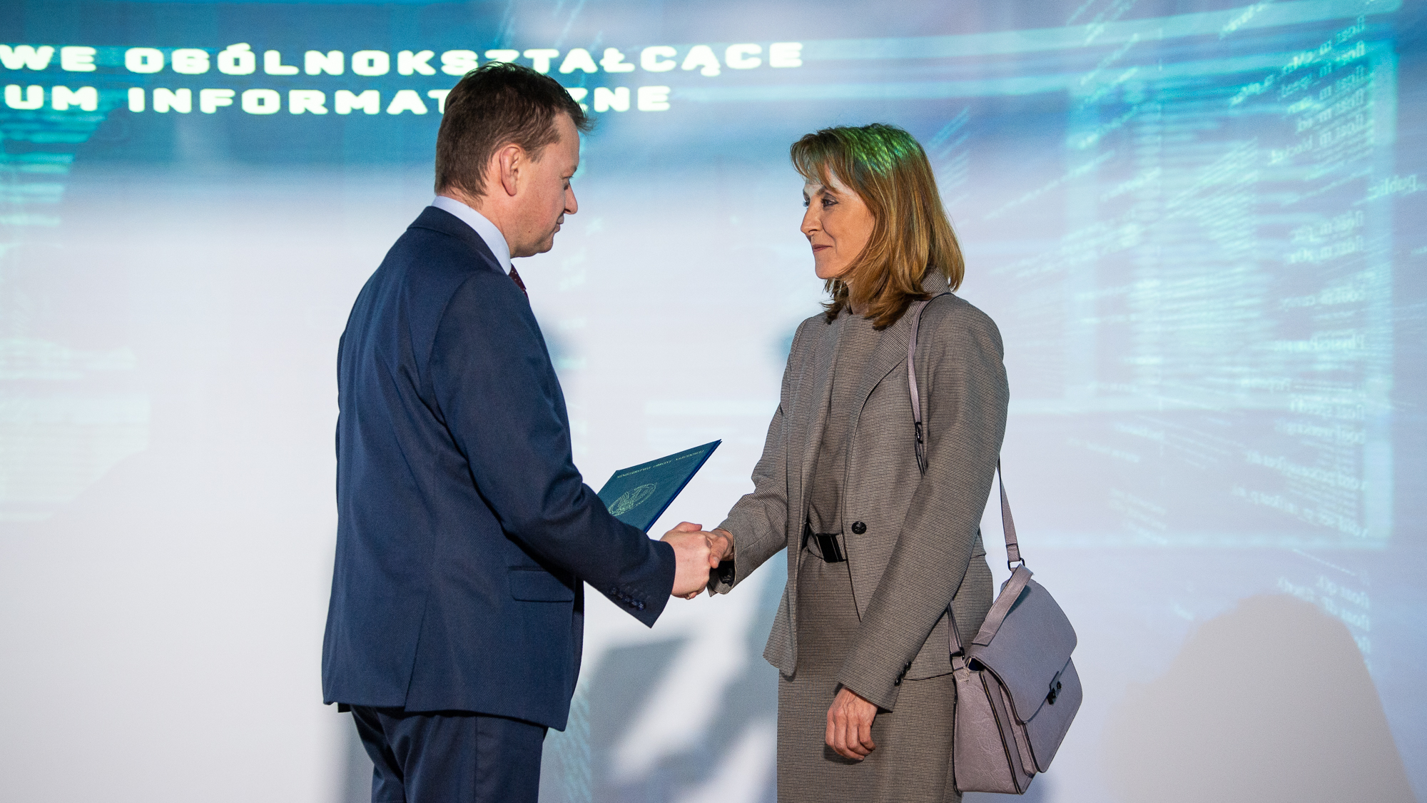 Podczas spotkania Mariusz Błaszczak, minister obrony narodowej wręczył Ewie Kacprzyk decyzję o powołaniu na stanowisko dyrektora Wojskowego Ogólnokształcącego Liceum Informatycznego.