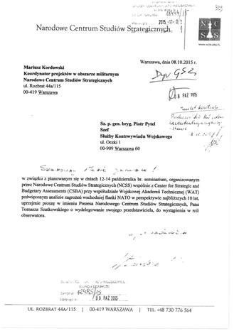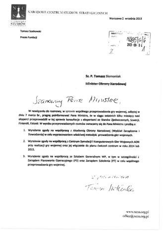 W ramach wspomnianej inicjatywy NCSS oraz WAT przeprowadziły po raz pierwszą w Polsce grę wojenną z wykorzystaniem innowacyjnych i niestosowanych wcześniej metod analizy operacyjnej. W projekcie tym wzięło udział wielu oficerów i pracowników cywilnych resortu obrony, kierowanego przez ministra T. Siemoniaka, a także eksperci i żołnierze z Sił Zbrojnych USA. Z inicjatywy i na pisemną prośbę ówczesnego prezesa Szatkowskiego, Szef SKW wyraził zgodę na objęcie przedsięwzięcia ochroną kontrwywiadowczą i wydelegował do udziału w nim oficera.