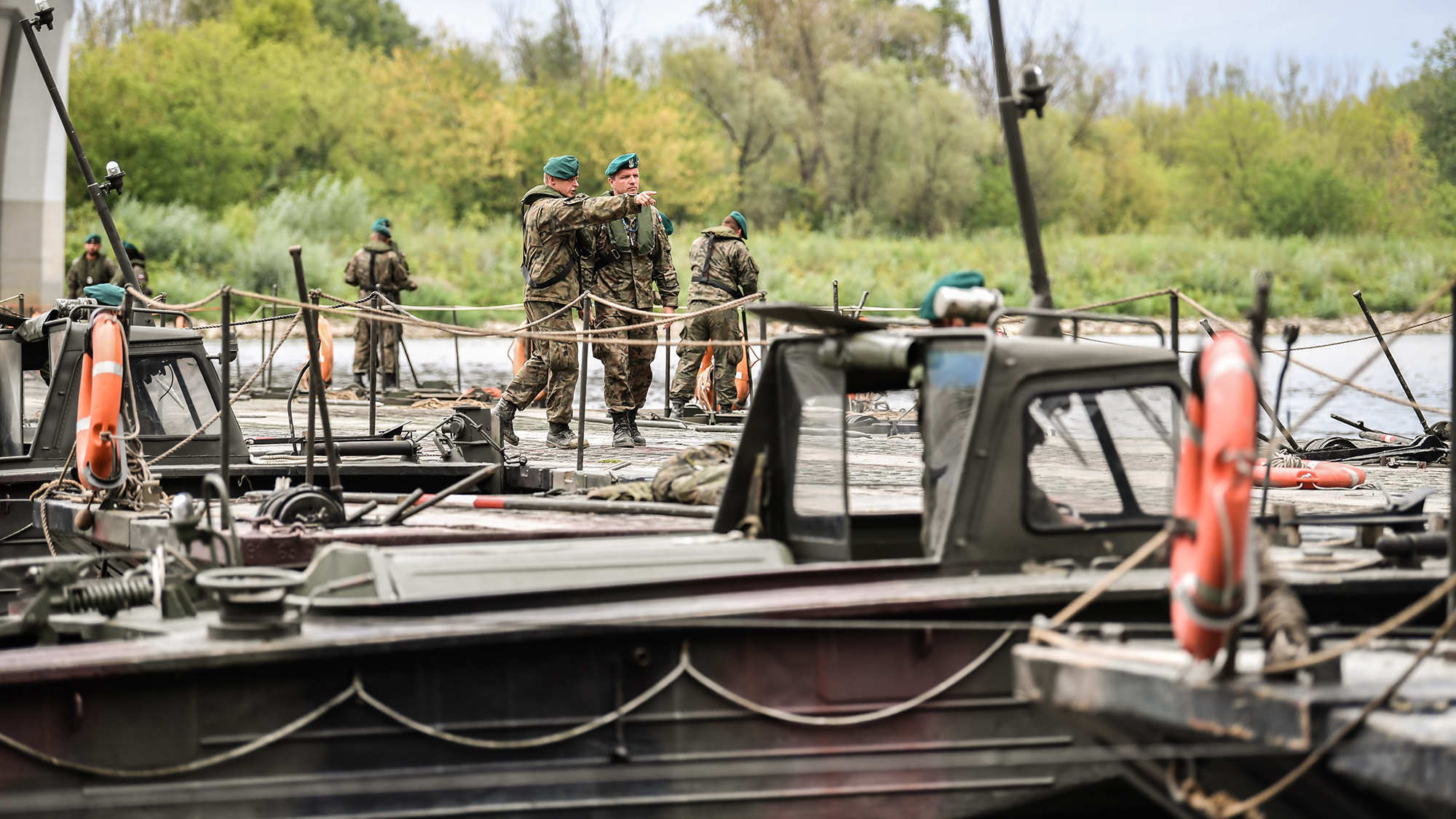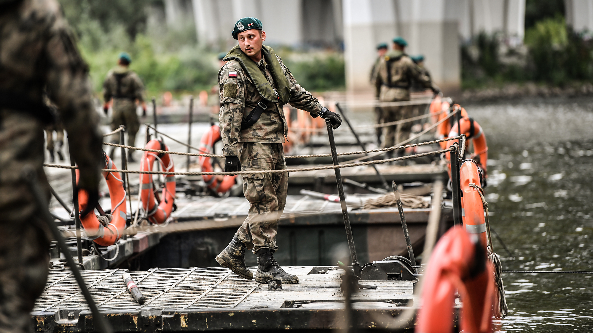– Kieruję do żołnierzy Wojsk Inżynieryjnych podziękowania za ich służbę. Rozpoczęli prace w piątek, od rekonesansu, w weekend pracowali, a dziś już kończą ostatni etap związany ze zrzuceniem mostu pontonowego na rzekę – mówił minister zwracając się do Inspektora Rodzajów Wojsk gen. brygady Sławomira Owczarka obecnego na odprawie.