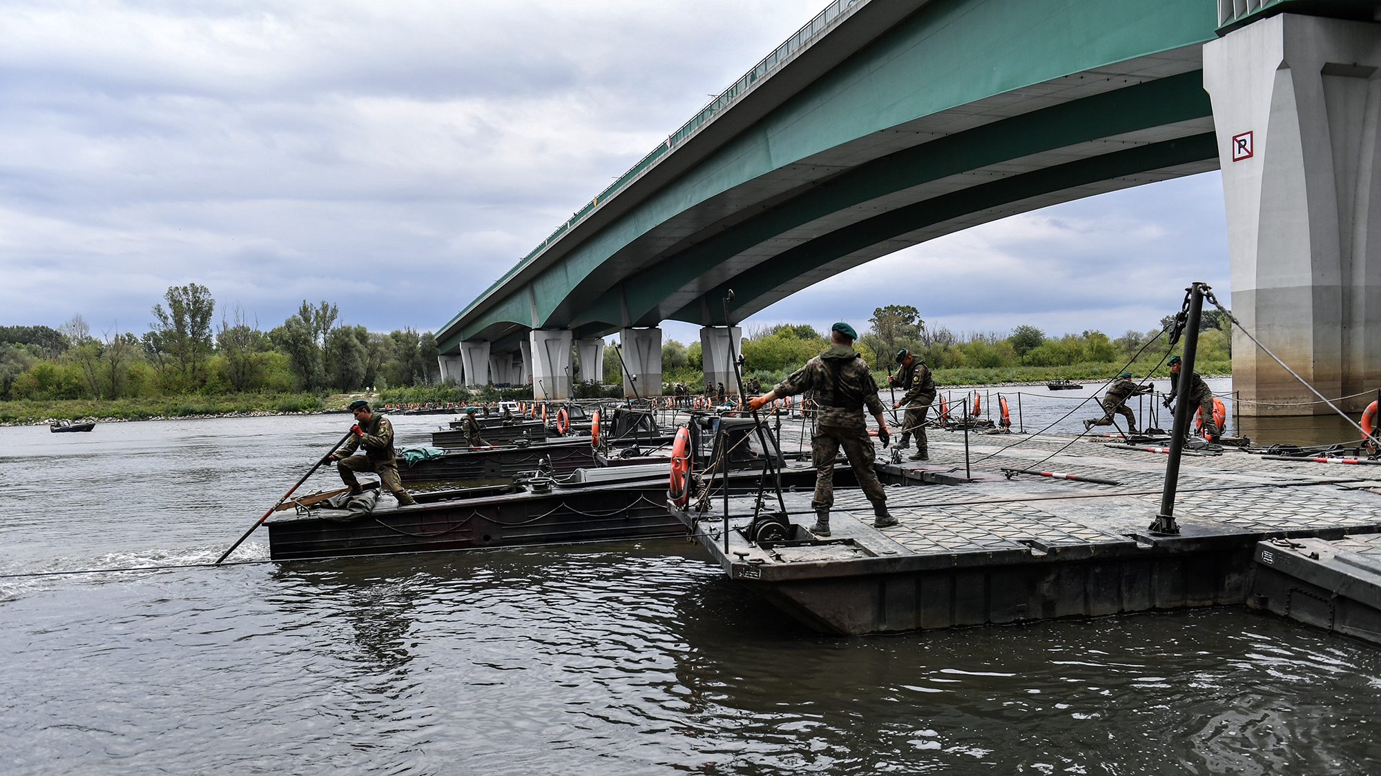 – Żołnierze kończą już ostatni etap związany ze zrzuceniem elementów mostu pontonowego na rzekę – powiedział Mariusz Błaszczak, minister obrony narodowej po odprawie z dowódcami pododdziałów saperskich budujących most pontonowy na Wiśle w Warszawie.