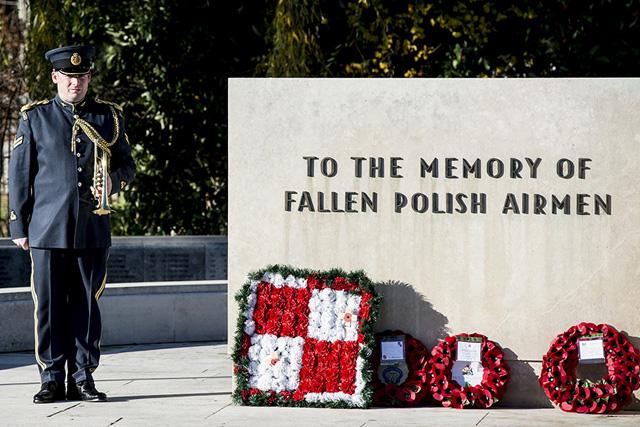 Po przywitaniu na lotnisku Northolt obie panie premier wspólnie złożyły wieńce pod Pomnikiem Lotników Polskich, który upamiętnia Polaków walczących w Polskich Siłach Powietrznych w Wielkiej Brytanii, m.in. lotników Dywizjonu 303.