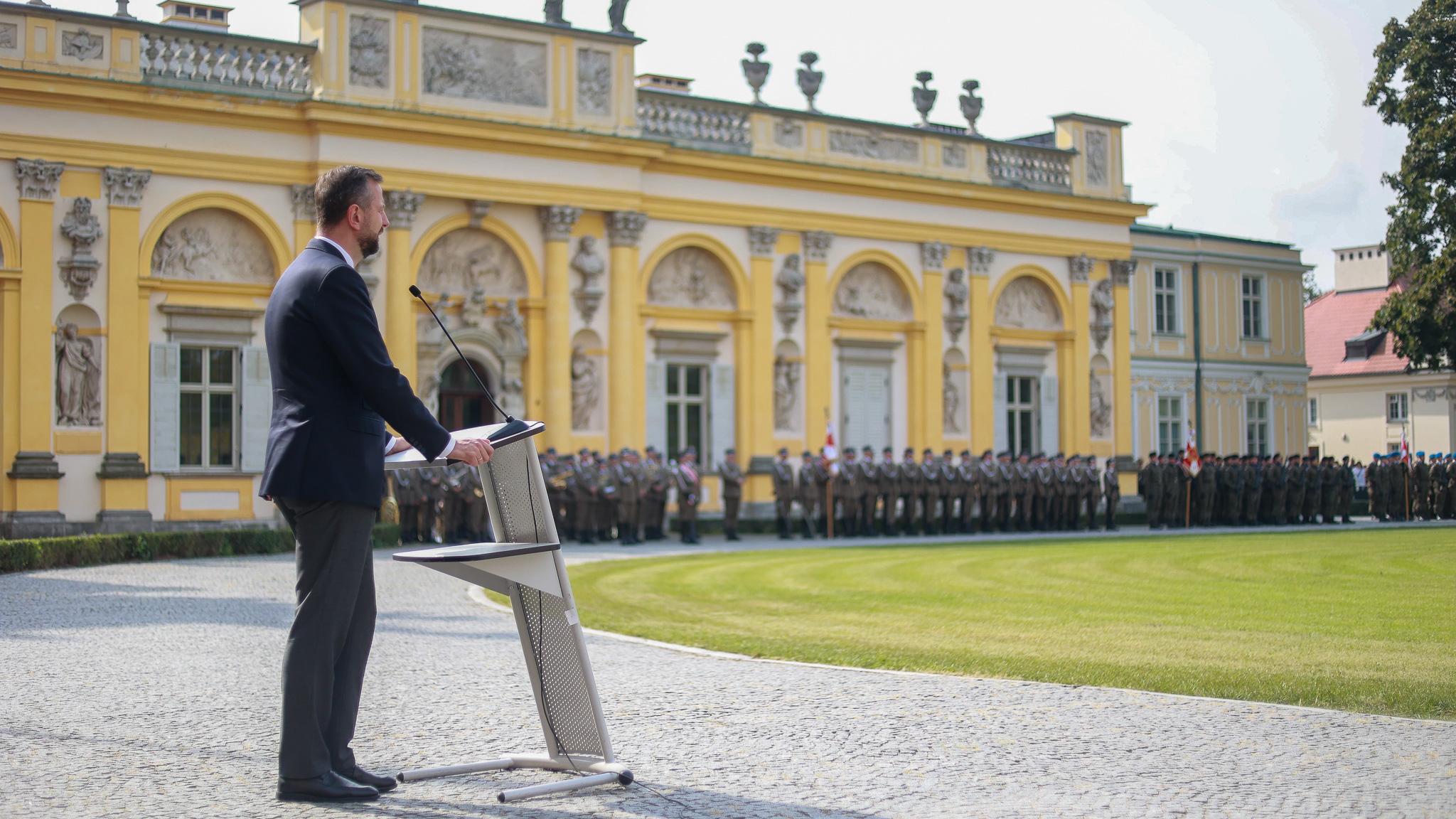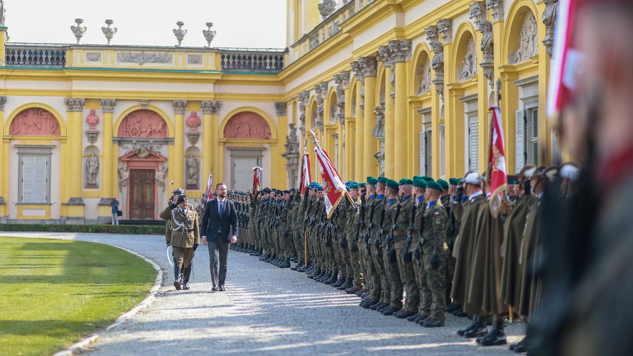- To jest największa formacja, najliczniejsza pod względem zasobu kadrowego, pod względem liczebności, sprzętu, obszaru działania, oddziaływania. To jest ta podstawa funkcjonowania polskich sił zbrojnych. Wielka część Wojska Polskiego to wojska lądowe. Ponad 60 tys. żołnierzy w różnych miejscach Polski, w różnych dywizjach, brygadach, jednostkach służące państwu polskiemu. Do obrony granicy, za co chcę w pierwszej kolejności podziękować. Wszystkim żołnierzom, którzy byli na granicy, którzy są w tym momencie, którzy bronią granicy - powiedział wicepremier W. Kosiniak – Kamysz podczas uroczystej zbiórki w Wilanowie.