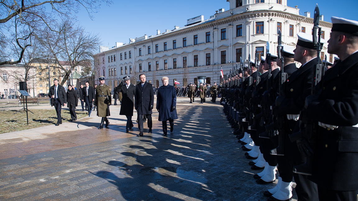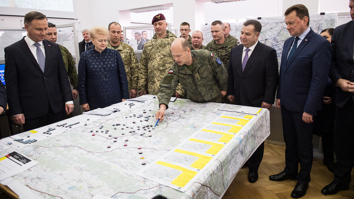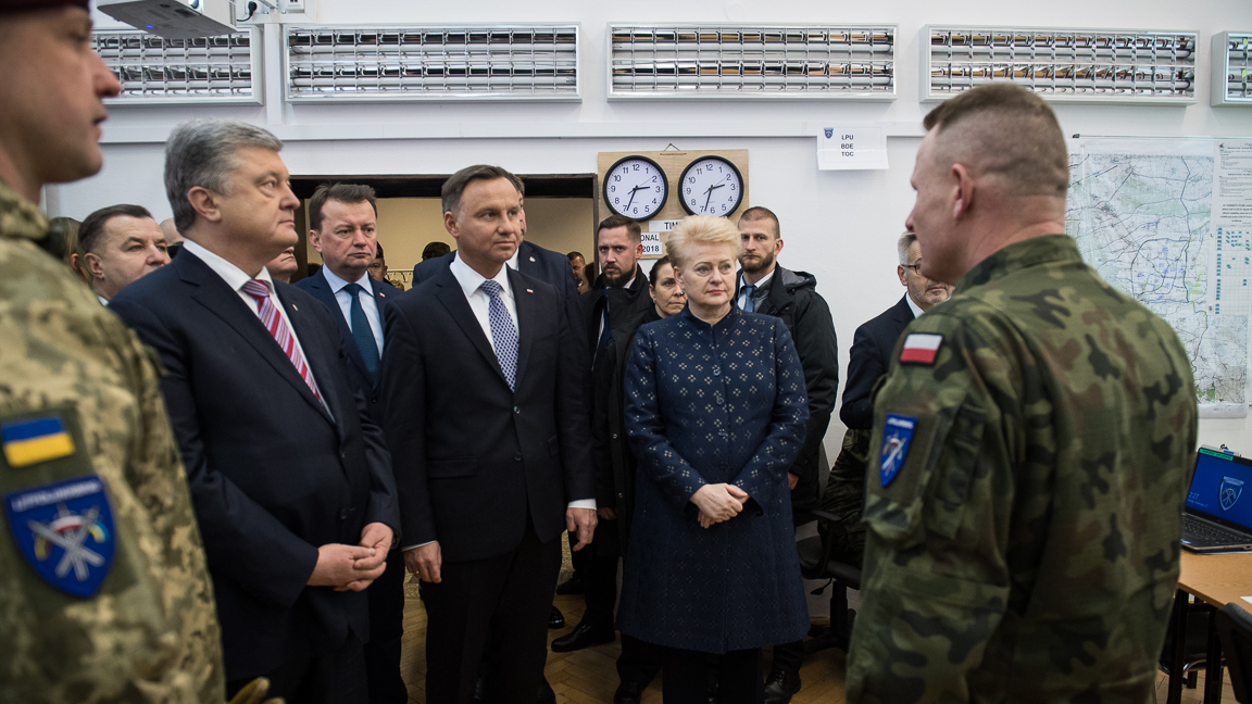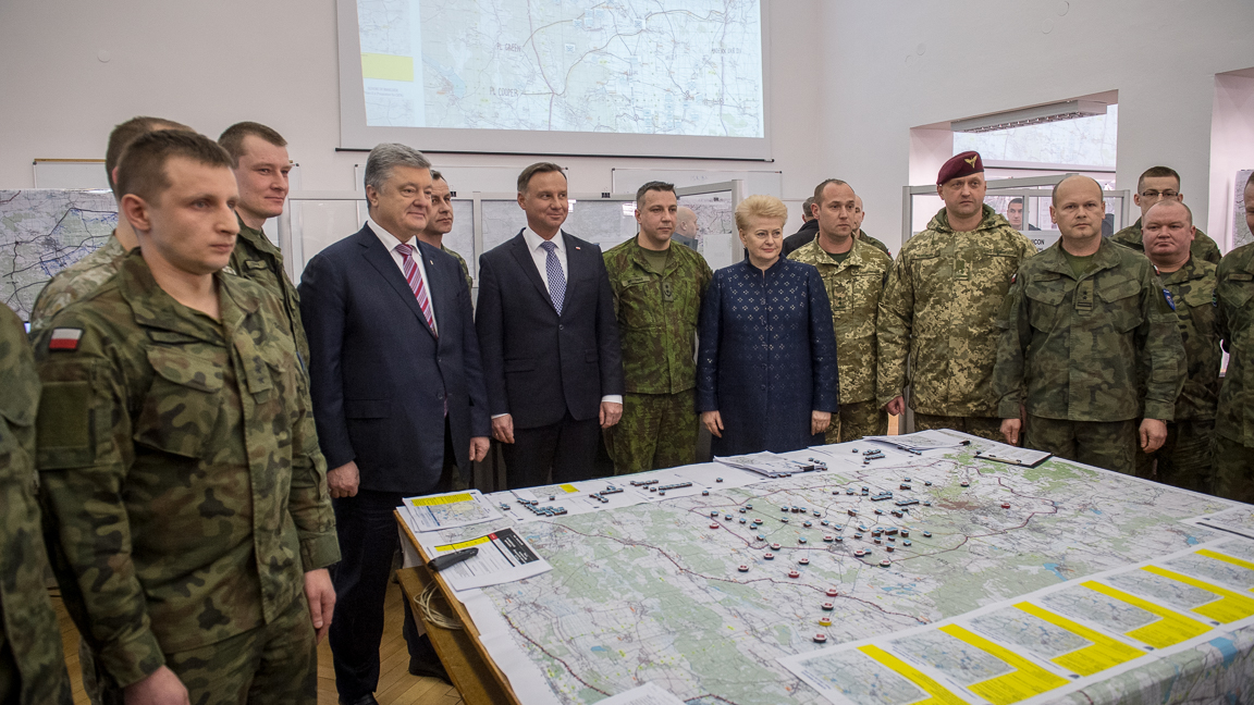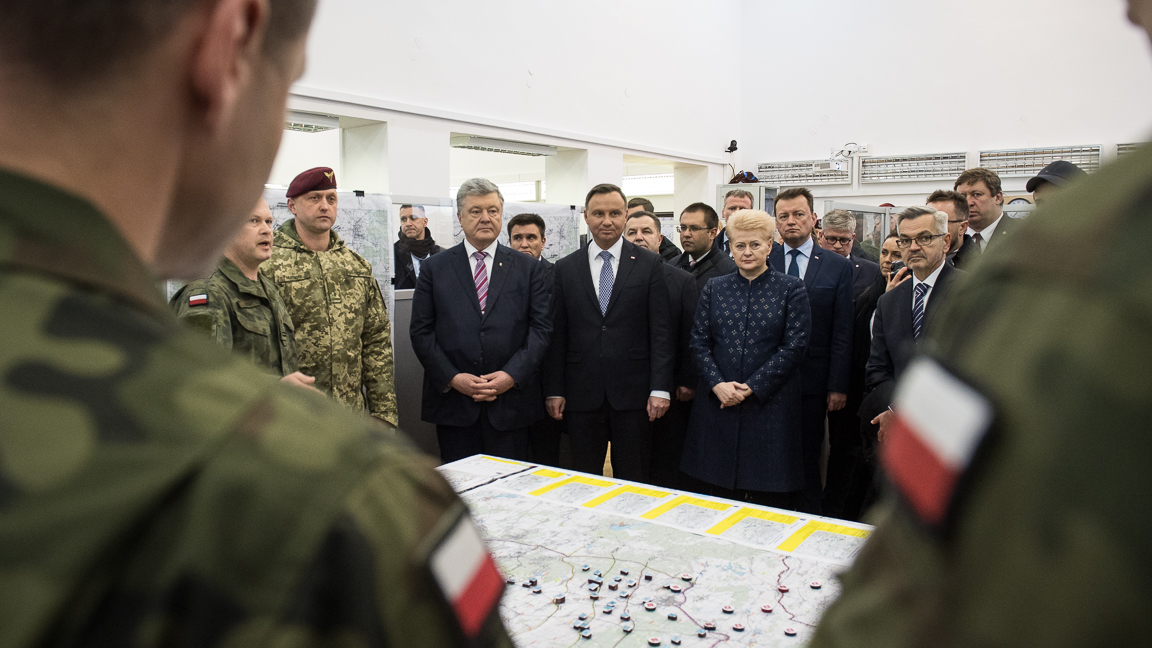 Prezydenci Polski, Litwy i Ukrainy Andrzej Duda, Dalia Grybauskaite i Petro Poroszenko rozmawiali z żołnierzami Wielonarodowej Brygady Litewsko-Polsko-Ukraińskiej im. Wielkiego Hetmana Konstantego Ostrogskiego w Lublinie.