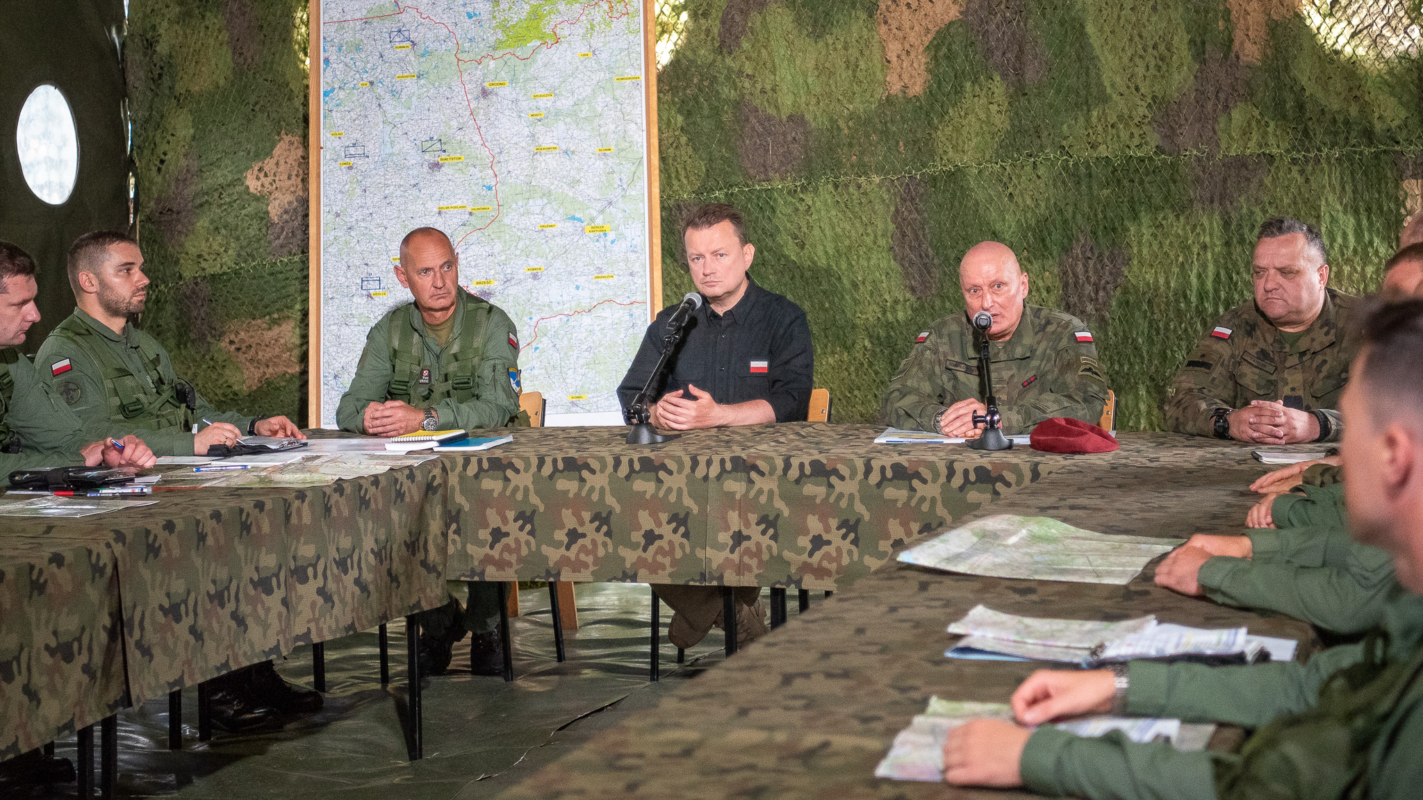 3 sierpnia br. szef MON spotkał się w Białymstoku z żołnierzami pełniącymi służbę w rejonach przygranicznych na wschodzie Polski. Odprawa dotyczyła zwiększenia liczby żołnierzy na granicy z Białorusią i wydzielenia dodatkowych sił i środków dla ochrony granicy.