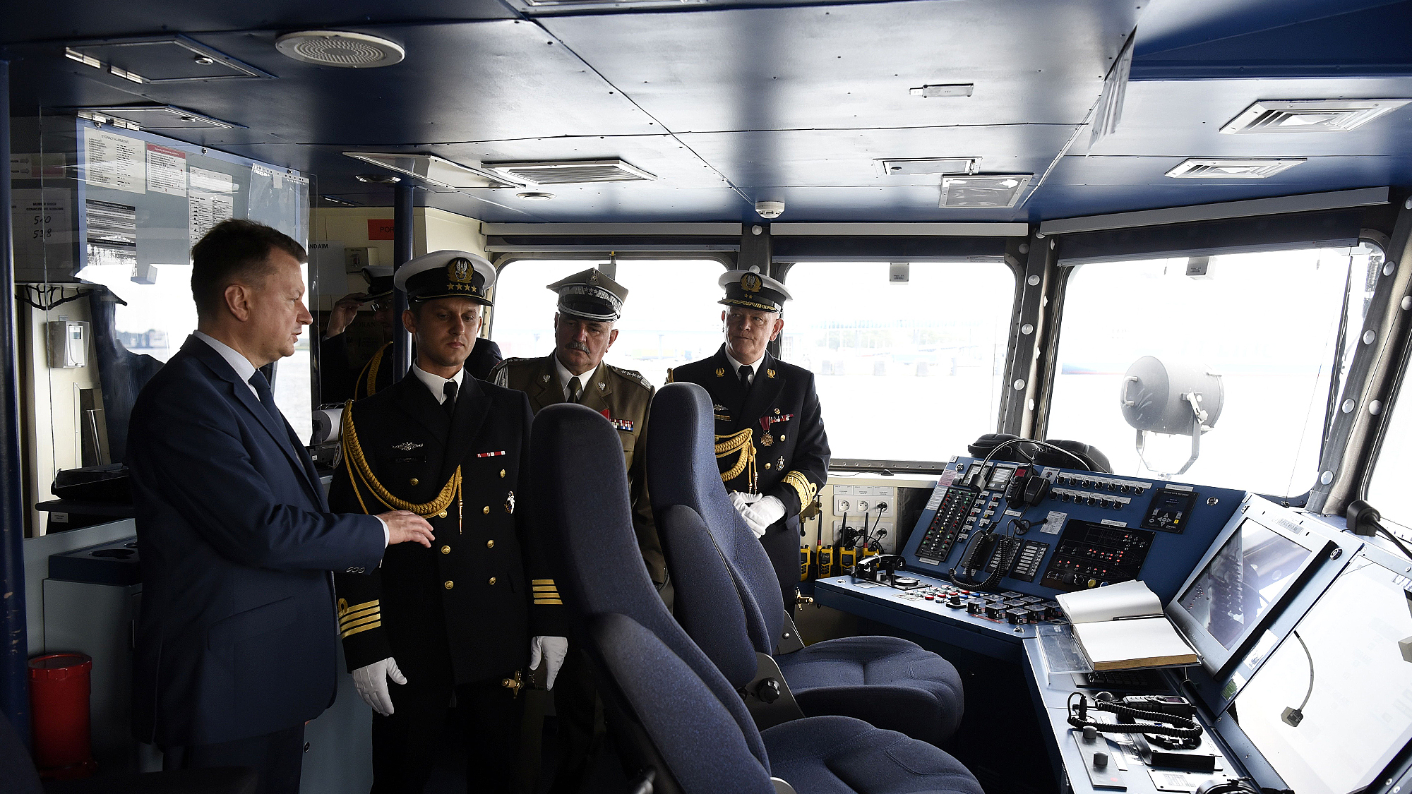 Miałem sposobność podpisać dziś umowę w sprawie wyposażenia Marynarki Wojennej w trzy kolejne niszczyciele min. Oprócz jednego okrętu, który jest już w służbie, niebawem kolejne trafią do 8 Flotylli Obrony Wybrzeża. Za kilka tygodni ORP Albatros trafi właśnie do tej jednostki, a jesienią tego roku ORP Mewa. Natomiast trzy kolejne okręty wyprodukowane przez polską stocznię trafią do Marynarki Wojennej już jako okręty produkowane seryjnie. To ważne, żeby Marynarka Wojenna dysponowała najnowocześniejszym sprzętem. Sprzętem, który daje gwarancję tego, że świetnie wyszkoleni marynarze mogą strzec polskiego wybrzeża - powiedział wicepremier Mariusz Błaszczak podczas zatwierdzenia umowy na dostarczenie trzech kolejnych niszczycieli min typu Kormoran II dla Marynarki Wojennej RP.