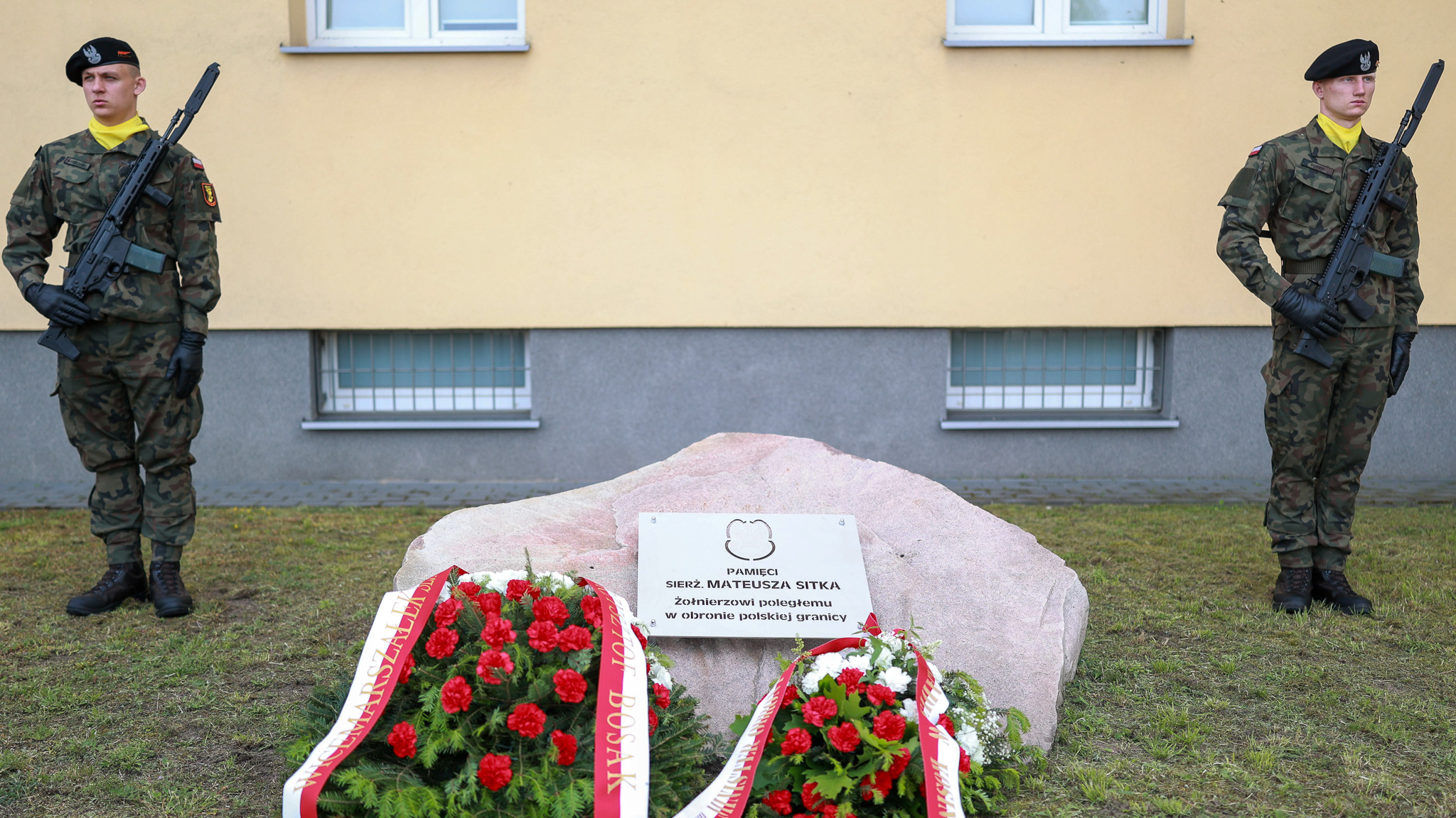 – Żołnierze stąd pamiętają bardzo, chyba najbardziej w Polsce, bo zaraz po tym, jeszcze przed uroczystościami Święta Wojska Polskiego w ubiegłym roku, nadano imię jednemu z Abramsów – właśnie imię Mateusza Sitka. Jechał jako pierwszy na defiladzie 15 sierpnia w ubiegłym roku. Jest obelisk, przed którym przed chwilą złożyliśmy kwiaty. Pamiętają bardzo dobrze dowódcy. Pan pułkownik Skrzypczak, który pełni tę rolę od kilku miesięcy, pan generał Kozłowski, który był dowódcą Mateusza Sitka, sierżanta Mateusza Sitka, kiedy pełnił misję na granicy, kiedy oddał życie. Była rodzina, za co jej bardzo dziękuję. (…) Jak miałem okazję rozmawiać z rodziną, wspominaliśmy służbę sierżanta Mateusza Sitka, to wszystko, co jest jego dokonaniem. To jest wielka wdzięczność nas wszystkich, wszystkich Polaków, którą też po raz kolejny w imieniu państwa polskiego przekazałem. Wdzięczność kolegów i koleżanek służących w Wojsku Polskim, dowódców, przełożonych
