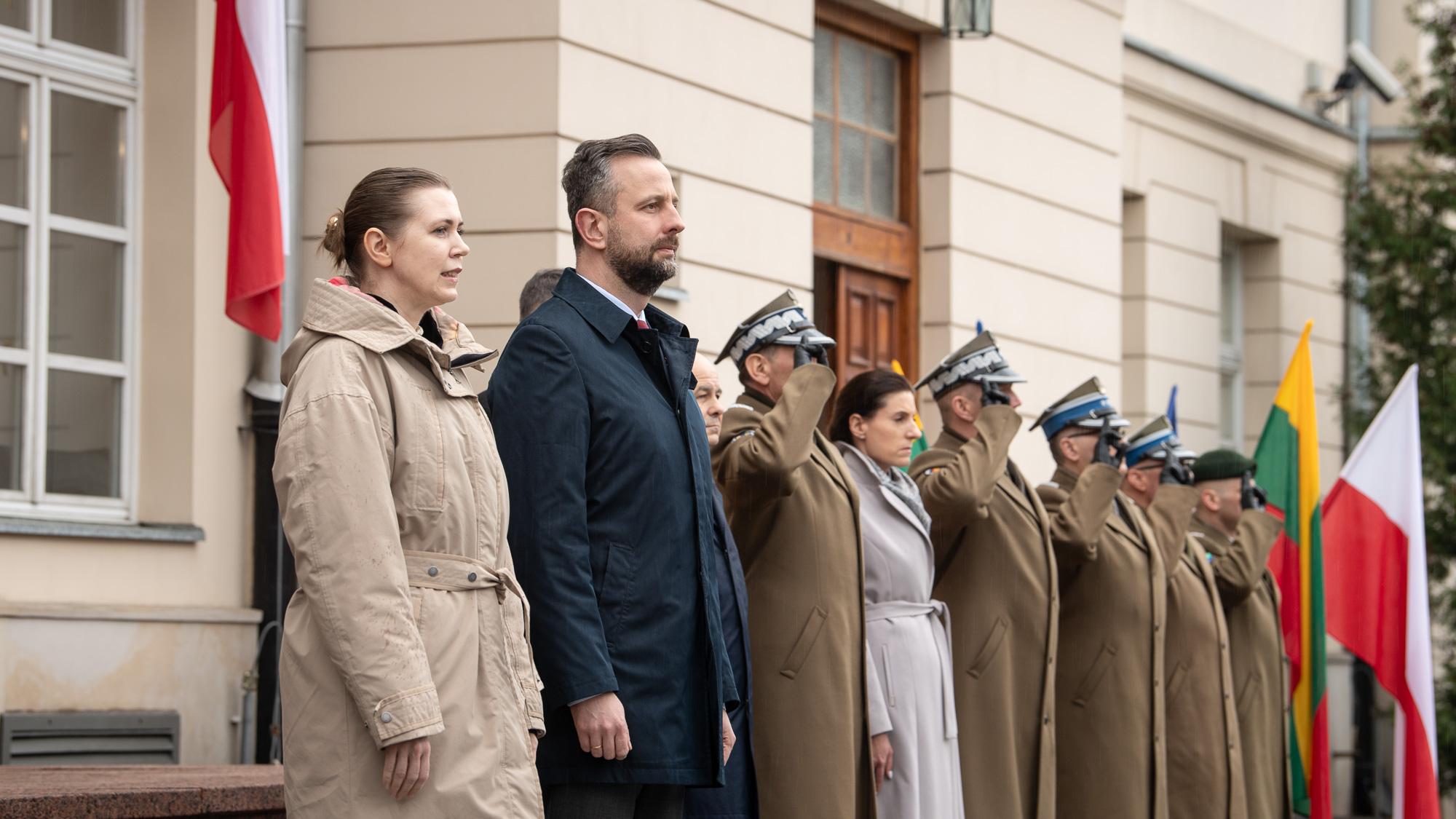 - Tematem, który nas łączy jest Tarcza Wschód i Bałtycka Linia Obrony - umocnienia na granicy polsko-białoruskiej, polsko-rosyjskiej, litewsko-białoruskiej, wzdłuż państw bałtyckich, aż do granicy Finlandii z Rosją. Wczoraj bardzo dobra decyzja Parlamentu Europejskiego, która uznała za strategiczny projekt dla Unii Europejskiej Tarczę Wschód i Bałtycką Linię Obrony - fortyfikacje na naszych granicach, które chronią wschodnią granicę Unii Europejskiej, chronią wschodnią flankę NATO. Cieszę się, że nasze państwa współpracują. To pokazuje wspólną strategię i wspólną odpowiedzialność - mówił szef MON po spotkaniu ze swoim litewskim odpowiednikiem.