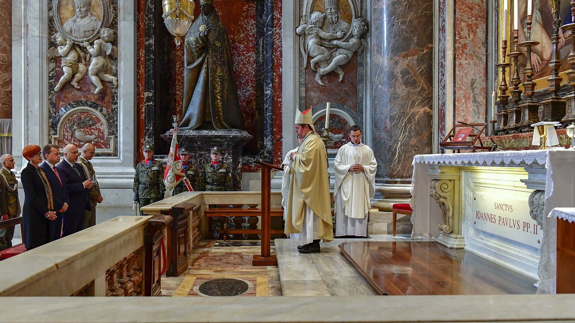 Przed centralnymi uroczystościami, które odbyły się na Cmentarzu Monte Cassino Mariusz Błaszczak, minister obrony narodowej oraz dowódcy wojskowi uczestniczyli we mszy świętej odprawionej w bazylice watykańskiej przy grobie świętego Jana Pawła II. Msza za Ojczyznę sprawowana była w dniu 99. rocznicy urodzin papieża Polaka. Mszę odprawił arcybiskup Jan Romeo Pawłowski, delegat do spraw nuncjatur w Sekretariacie Stanu Stolicy Apostolskiej.