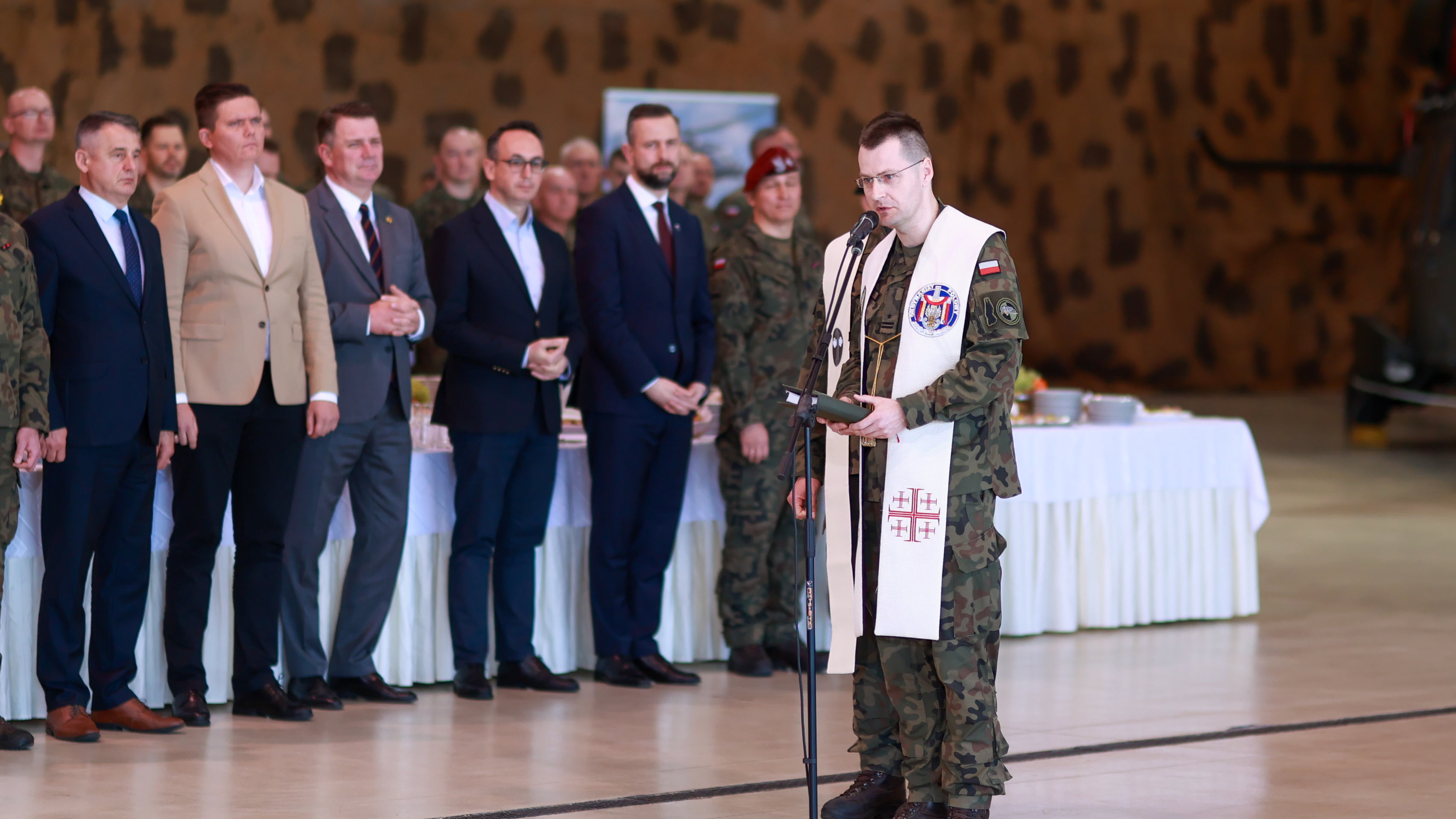 - Jesteśmy tutaj w 25 Brygadzie Kawalerii Powietrznej, w miejscu szczególnym, w brygadzie szczególnej. Jesteśmy w momencie, w którym nie tylko spotykamy się z okazji zbliżających się Świąt Wielkiej Nocy, ale przede wszystkim chciałbym z wami się podzielić kilkoma uwagami, ale też wyrazić swoją wdzięczność za służbę. Za służbę wszystkich żołnierzy Wojska Polskiego. W naszej skomplikowanej rzeczywistości, w miejscu i w momencie, w którym się znajdujemy, kiedy emocje różnego rodzaju z jednej strony polityczne, z drugiej strony społeczne, różnego rodzaju poglądy i światopoglądy się ścierają jest coś, co nas łączy. To jest naród, to jest wspólnota, to nie jest tylko ziemia, na której gospodarujemy i mieszkamy, ale to jest coś więcej. To jest patrzenie w jednym kierunku. Polski bezpiecznej, Polski która jest państwem pokoju, Polski, która daje godne warunki do funkcjonowania i życia wszystkim obywatelom