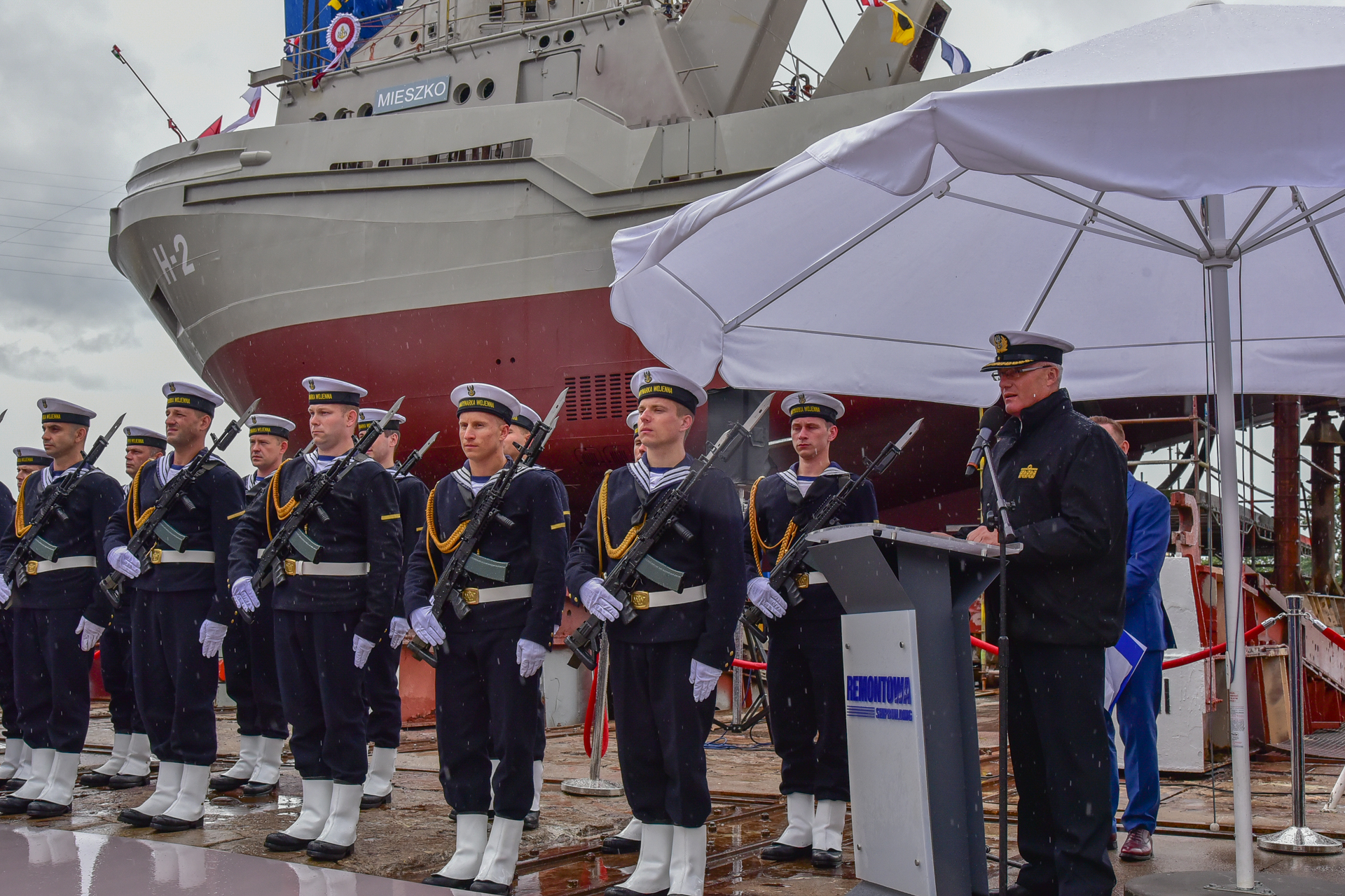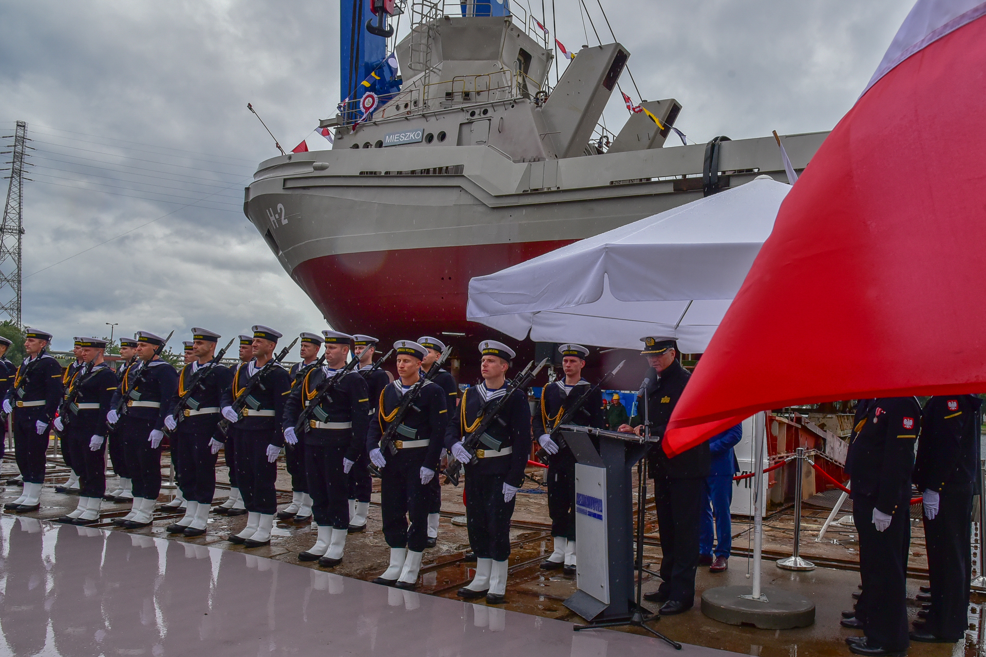 Trzeci holownik typu B860 przeznaczony dla Marynarki Wojennej RP otrzymał dzisiaj imię Mieszko. W poniedziałek 8 lipca br. na terenie Stoczni Remontowa Shipbuilding S.A. w Gdańsku odbyła się uroczystość chrztu nowego sprzętu, który trafi do 3. Flotylli Okrętów.