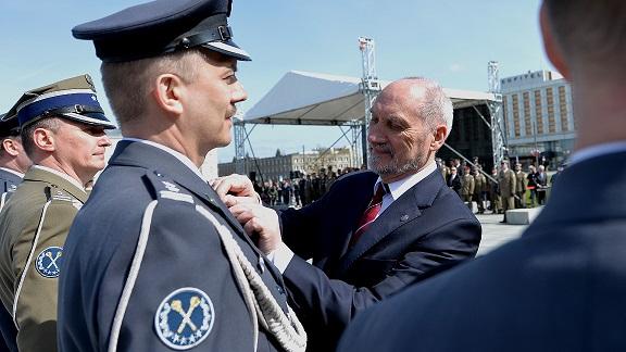 – Fundamentem, źródłem i siłą polskiej niepodległości było, jest i pozostanie Wojsko Polskie. Tak było w tamtych dniach końca XVIII wieku, tak było później, tak jest także dzisiaj. Wielkie, nieprzemijające osiągnięcia Wojska Polskiego w ciągu całego tysiąclecia, budują polską tradycję niepodległościową, są punktem odniesienia w naszym myśleniu o dniu dzisiejszym, o przyszłości, o naszym bezpieczeństwie. To właśnie dlatego ten dzień, dzień barw narodowych, dzień, w którym każdy z Polaków przypomina sobie i przywołuje na pamięć, wielkie, czasem trudne, czasem dramatyczne, ale zawsze wielkie chwile z naszej historii wybraliśmy na awanse oficerskie, na odznaczenia, dzień, w którym armia pokazuje swoich najlepszych z najlepszych, opinii publicznej – mówił podczas uroczystości minister Antoni Macierewicz.