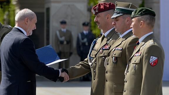 – Jesteście reprezentantami tej wielkiej rzeszy żołnierzy, którzy w ciągu ostatnich szesnastu miesięcy awansowali, którzy w ciągu ostatnich szesnastu miesięcy rozpoczęli zmieniać polską armię. To jest 21 tysięcy awansów podoficerskich, to jest 5 tysięcy awansów szeregowych i to jest ponad 5 tysięcy awansów oficerów starszych, podpułkowników, pułkowników i generałów. Chcę z tego miejsca serdecznie podziękować szefowi Sztabu Generalnego, dowódcy Generalnemu, dowódcy Operacyjnemu, dowódcy Żandarmerii, dowódcy Obrony Terytorialnej i generałowi Głąbowi, za wybór, wskazanie i decyzję, którą ja jedynie podpisałem. Ale podpisałem z dumą, radością i przekonaniem, że wszyscy z was dzisiaj mianowani, tak jak wszyscy, którzy zostali mianowani w ciągu ostatnich szesnastu miesięcy podejmą trud i wyzwanie, bo trudem i wyzwaniem jest pełnienie wyższych funkcji, (…) bo trudem i wyzwaniem jest bycie przywódcą armii polskiej – mówił minister obrony narodowej Antoni Macierewicz podczas uroczystości na Placu Marszałka Józefa Piłsudskiego.