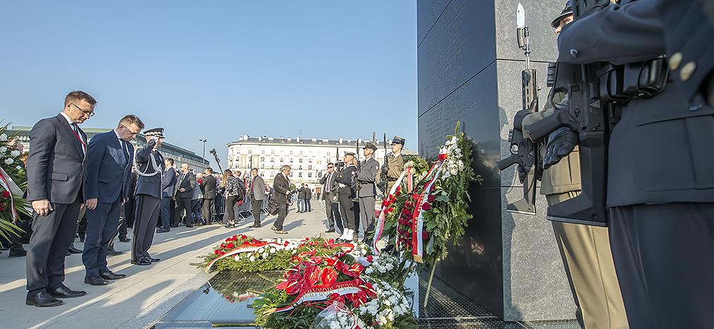 W ósmą rocznicę katastrofy smoleńskiej, na placu Marszałka Józefa Piłsudskiego w Warszawie odsłonięto Pomnik Ofiar Tragedii Smoleńskiej. W uroczystości uczestniczył Mariusz Błaszczak, minister obrony narodowej.