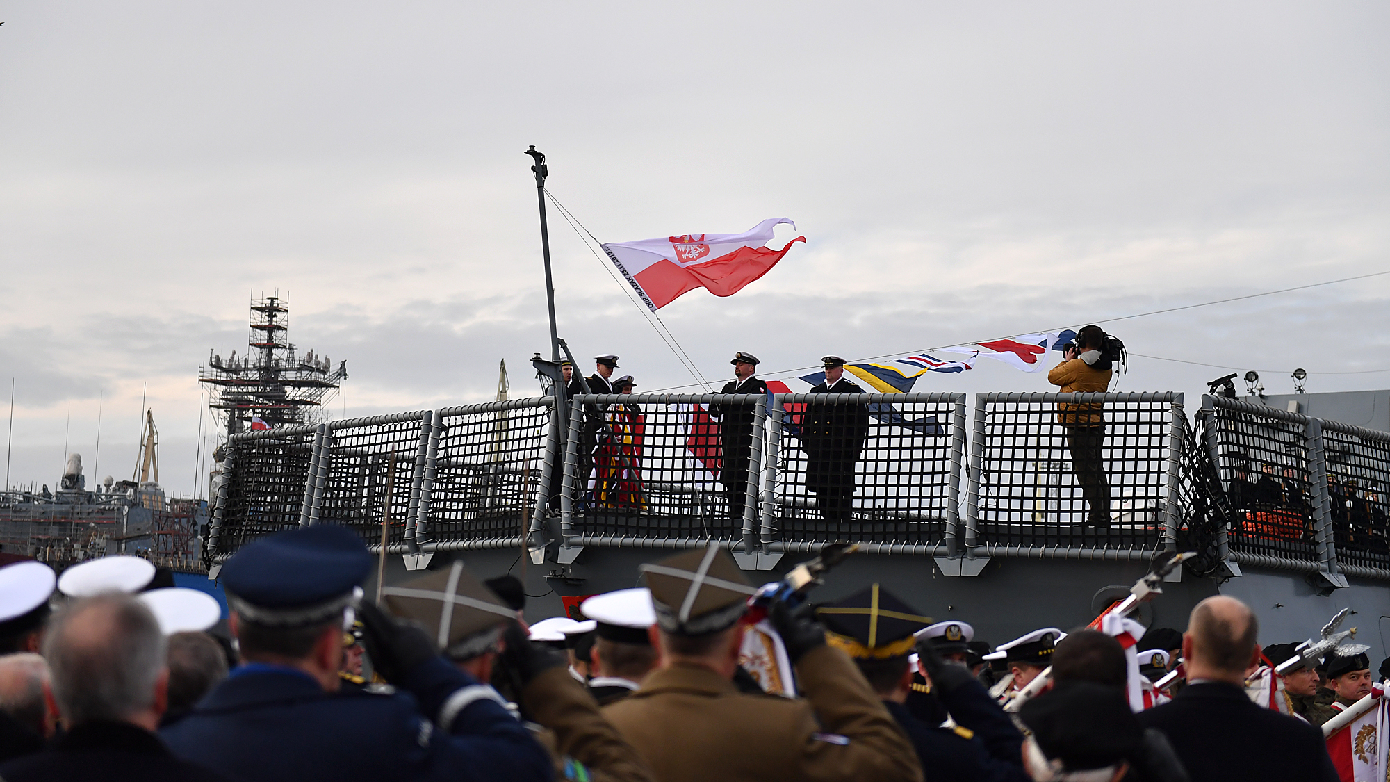 - Przed chwilą byliśmy świadkami ważnej i historycznej chwili. To jest ważne, aby Marynarka Wojenna, która liczy sobie 101 lat rozwijała się. Ważne jest, aby marynarze ramię w ramię z żołnierzami pozostałych rodzajów sił zbrojnych strzegli bezpieczeństwa naszej Ojczyzny. I tak się dzieje. Podniesiona bandera na ORP Ślązak jest tego przykładem - powiedział Mariusz Błaszczak, minister obrony narodowej w Gdyni.