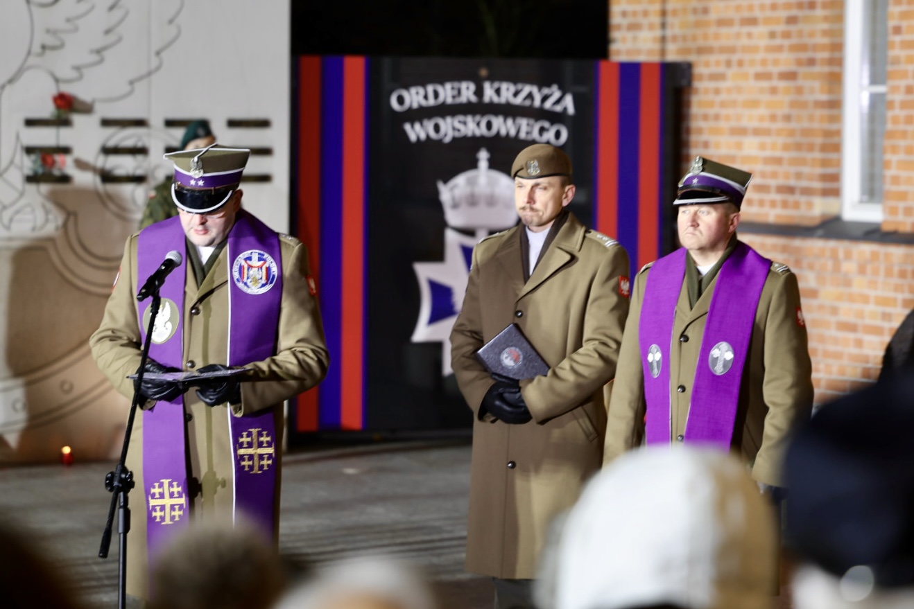 W trakcie uroczystości uczestnicy zapalili znicze i złożyli kwiaty pod pomnikiem upamiętniającym żołnierzy poległych na misjach.