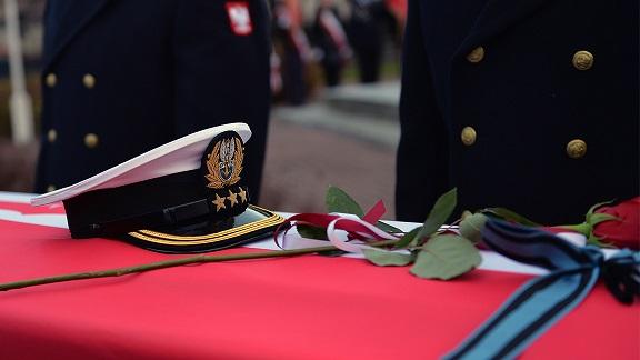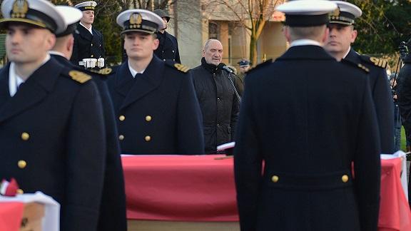 Minister Macierewicz podczas uroczystości patriotycznej z wojskową asystą honorową przed pomnikiem Obrońcom Helu, przy trumnach ze szczątkami oficerów, przypomniał, że oficerowie Marynarki Wojennej RP byli „wierni swoim rodakom i przysiędze wojskowej” za co spotkała ich śmierć: