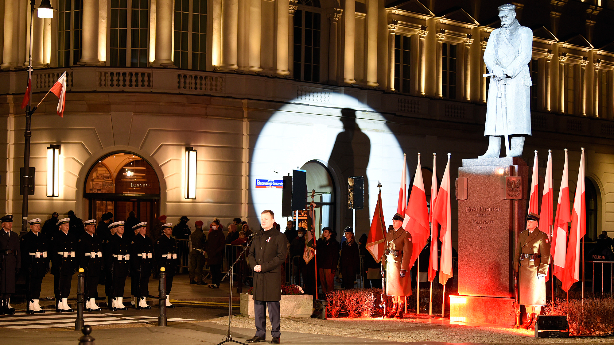 W przeddzień 103. rocznicy odzyskania przez Polskę niepodległości przed pomnikiem marszałka Józefa Piłsudskiego w Warszawie odbył się Capstrzyk Niepodległości. W uroczystości uczestniczył szef MON oraz najwyżsi dowódcy Wojska Polskiego.