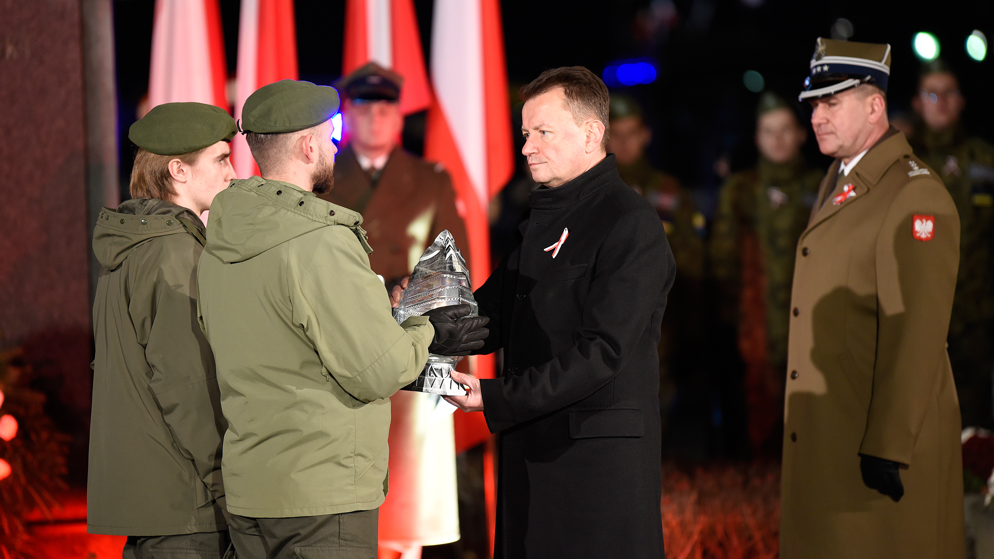 "Jesteśmy myślami z tymi pokoleniami żołnierzy, którzy walczyli o naszą wolność, naszą niepodległość. Ale też pamiętamy o tych żołnierzach, którzy dziś stoją na straży naszego bezpieczeństwa na granicy polsko-białoruskiej, którzy odpierają ataki hybrydowe, jakim poddawana jest nasza Ojczyzna. Dziękujemy im za ich zaangażowanie i służbę. Pamięć o naszej przeszłości i dumnej historii kształtuje naszą tożsamość narodową. Zaś dzisiejsze wysiłki zmierzające ku temu, żeby Polska była bezpieczna kształtują naszą rzeczywistość" - powiedział Mariusz Błaszczak, minister obrony narodowej podczas Capstrzyku Niepodległości.