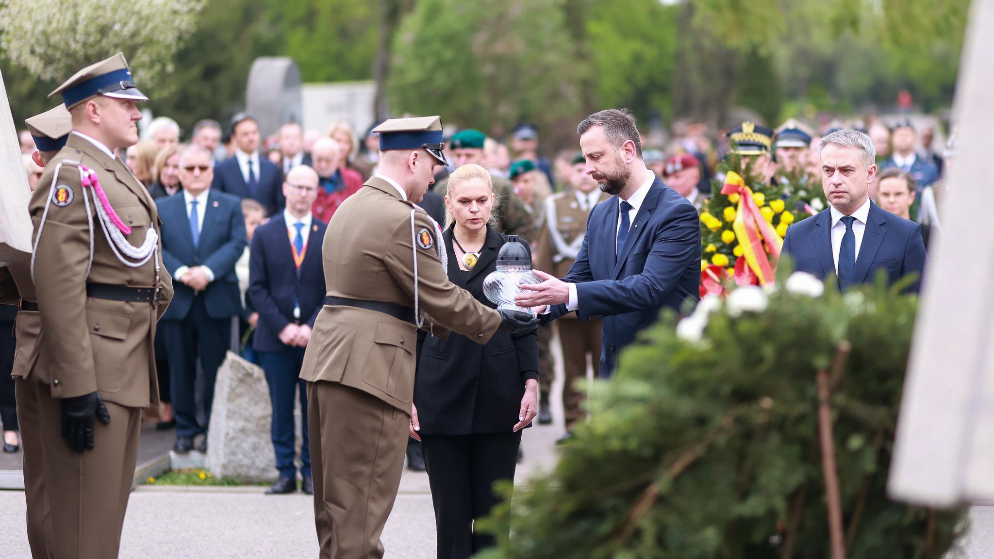 Wicepremier W. Kosiniak-Kamysz złożył również kwiaty na grobach ofiar katastrofy pod Smoleńskiem, w tym osób związanych z Wojskiem Polskim.