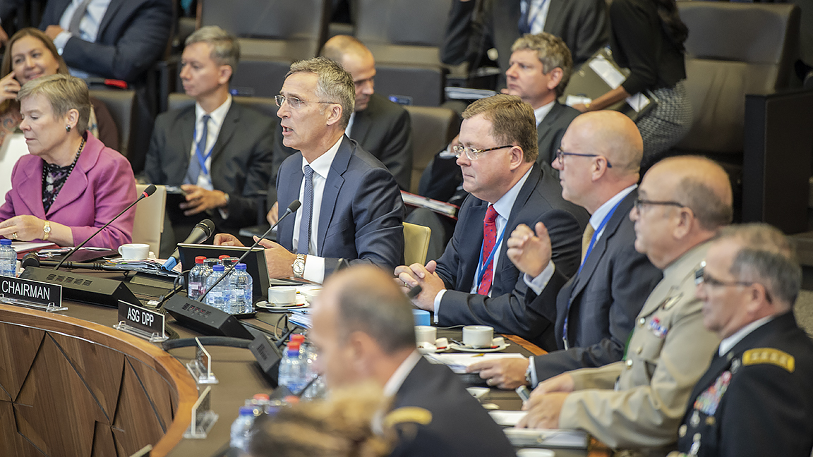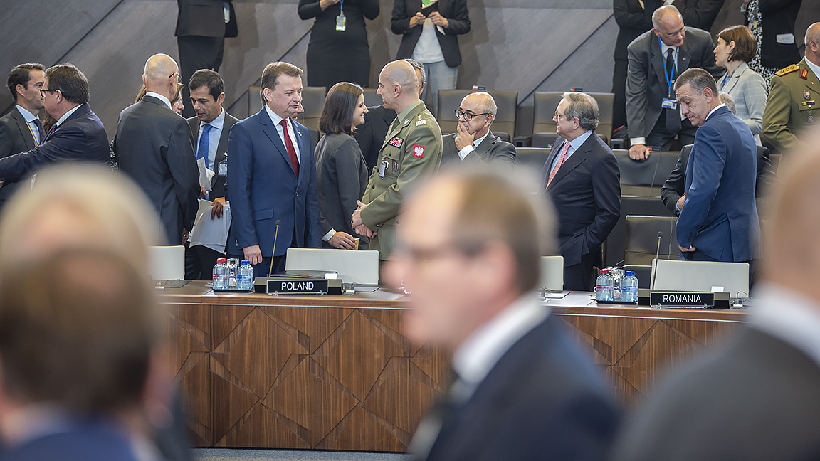 – Podczas dzisiejszego spotkania mówiliśmy o zagrożeniach wynikających z agresywnej postawy ze strony rosyjskiej. To niezwykle ważne, żeby mieć świadomość tych zagrożeń i znaleźć na nie właściwą, i skuteczną odpowiedź. NATO jest solidarne i stanowi gwarancję bezpieczeństwa państw, które wchodzą w skład Sojuszu – powiedział Mariusz Błaszczak, minister obrony narodowej w Kwaterze Głównej NATO.