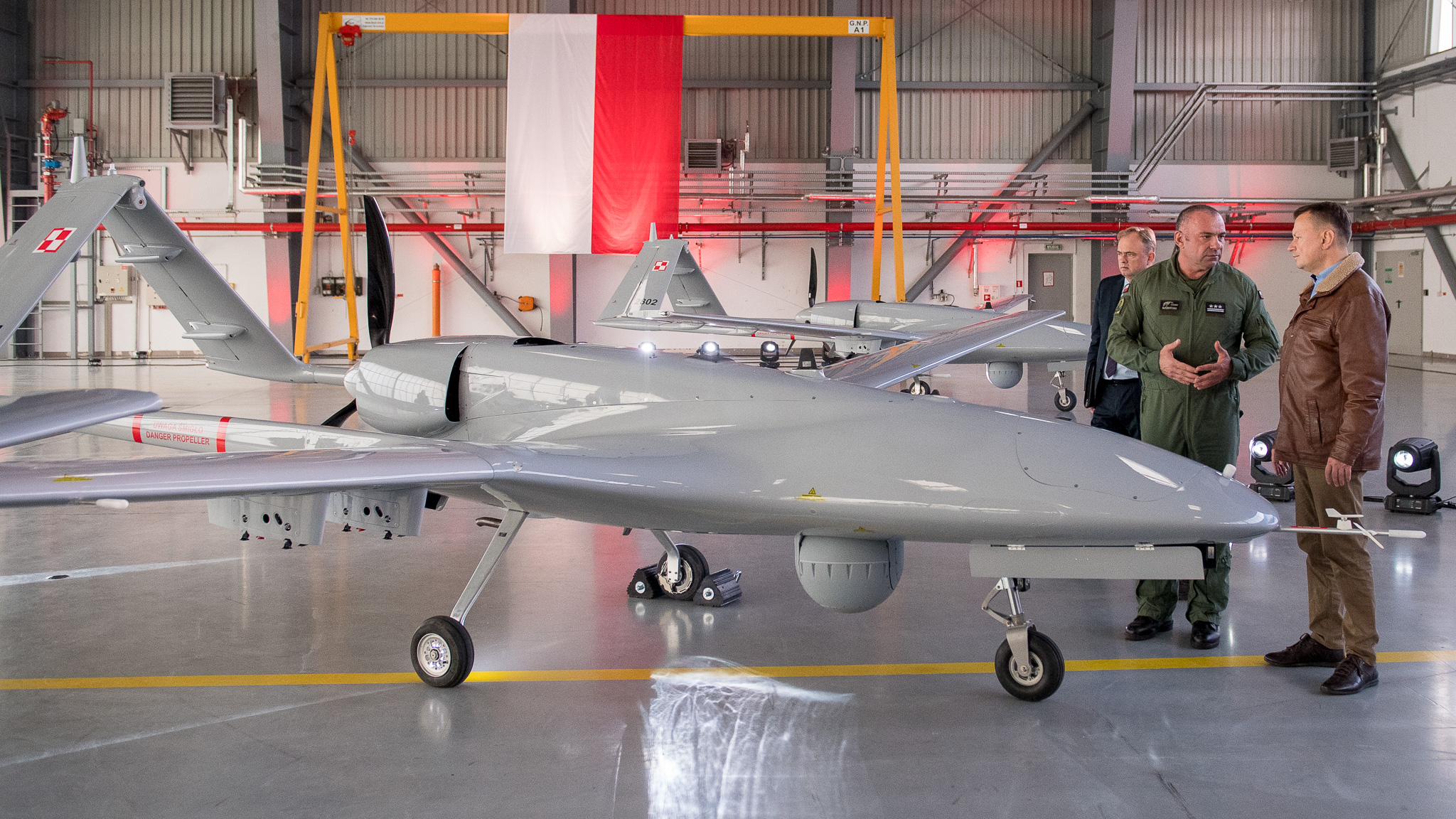 28 października br. w 12 Bazie Bezzałogowych Statków Powietrznych szef MON uczestniczył w przekazaniu na wyposażenie Wojska Polskiego pierwszych bezzałogowych systemów powietrznych Bayraktar TB2.