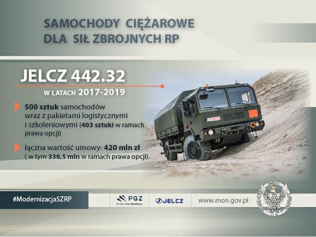 Minister wziął udział w ceremonii podpisania umowy na dostawę 500 sztuk samochodów średniej ładowności wysokiej mobilności Jelcz 442.32 wraz z pakietami logistycznym i szkoleniowym, przeznaczonych m.in. dla Wojsk Obrony Terytorialnej. Gwarantowana część kontraktu przewiduje zakup 97 pojazdów za ponad 85 mln zł, a opcja na kolejne 403 ciężarówki jest warta ponad 354 mln zł.
