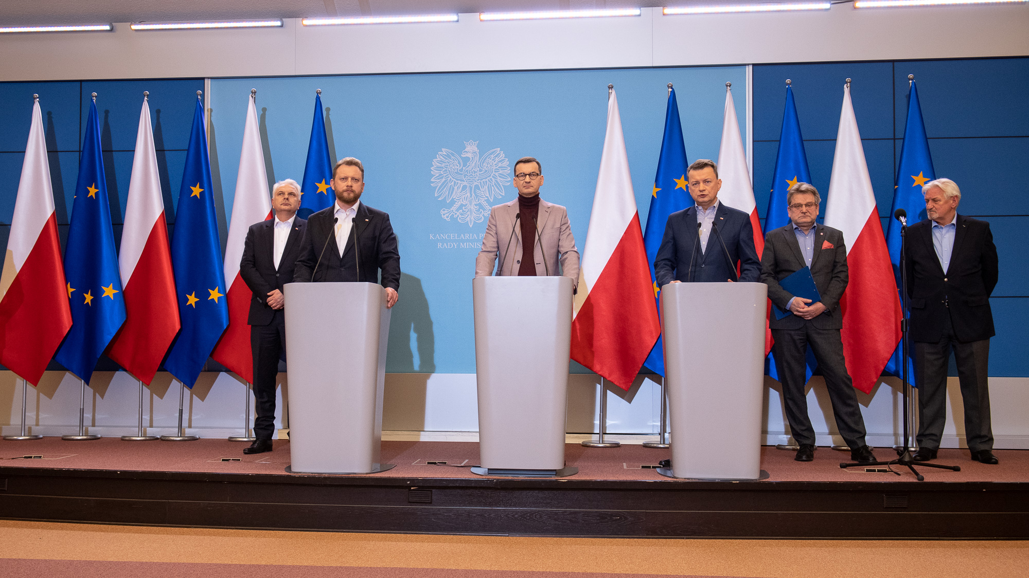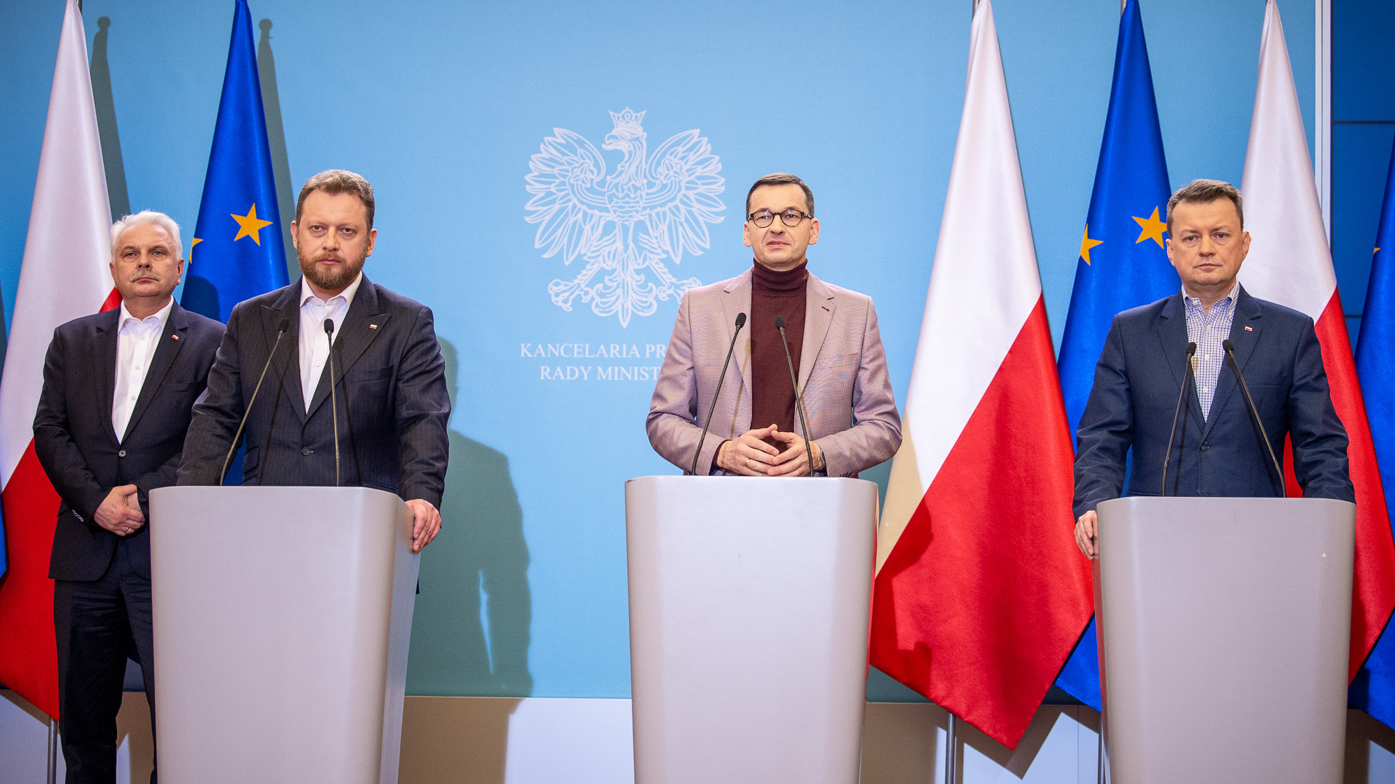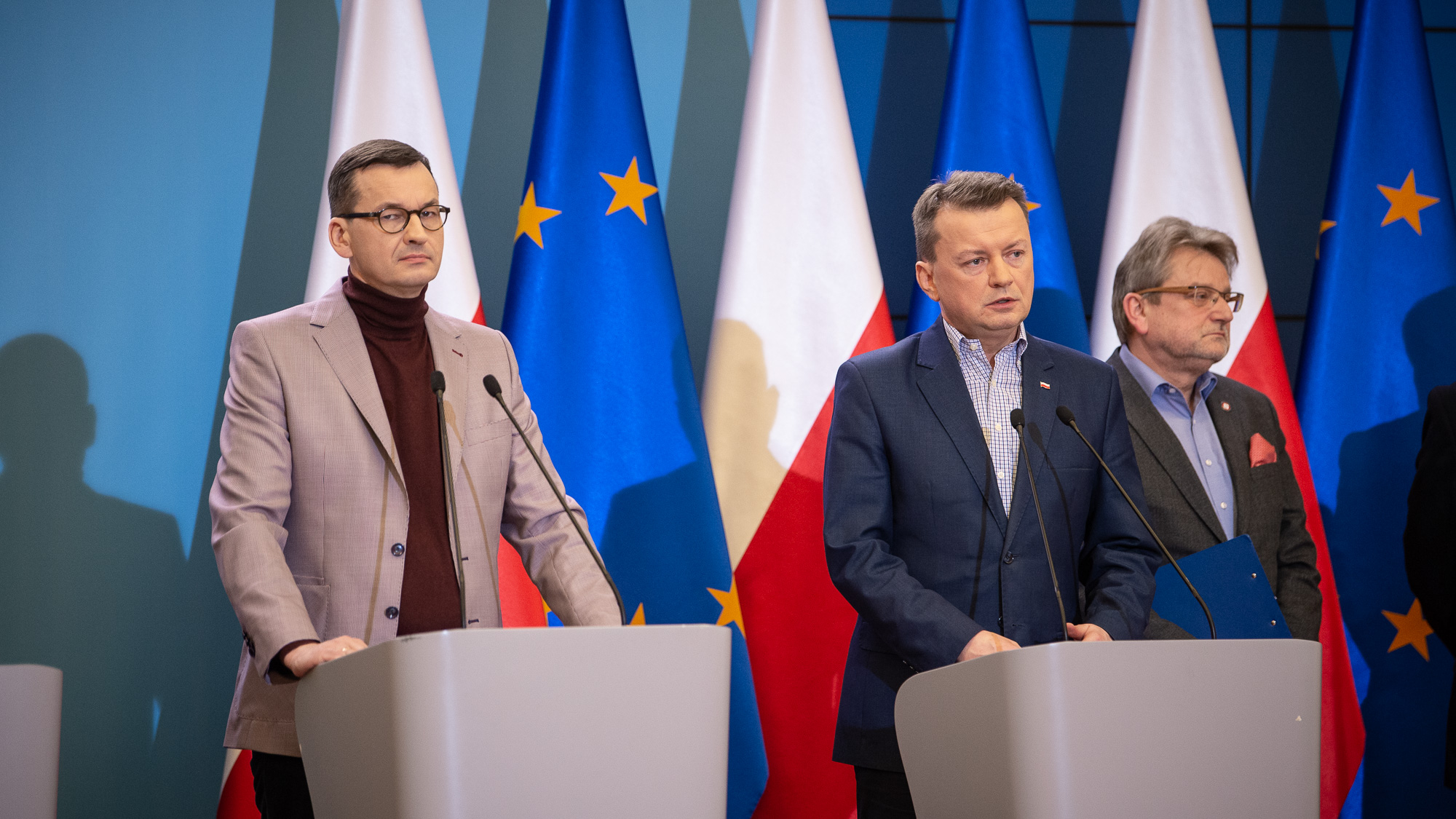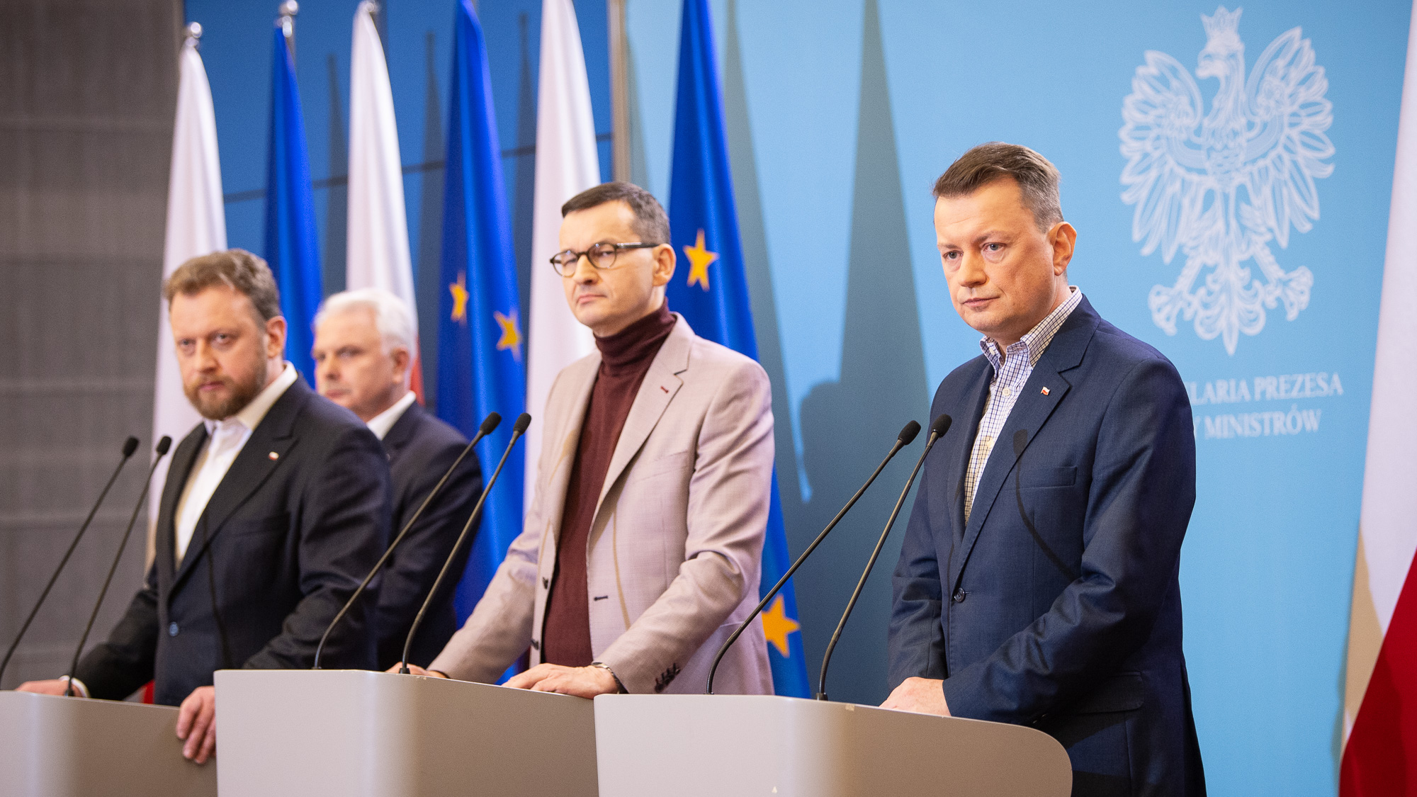 Podczas konferencji premier Mateusz Morawiecki podziękował ministrowi Mariuszowi Błaszczakowi, za zaangażowanie i profesjonalne działania podjęte przez Wojsko Polskie.