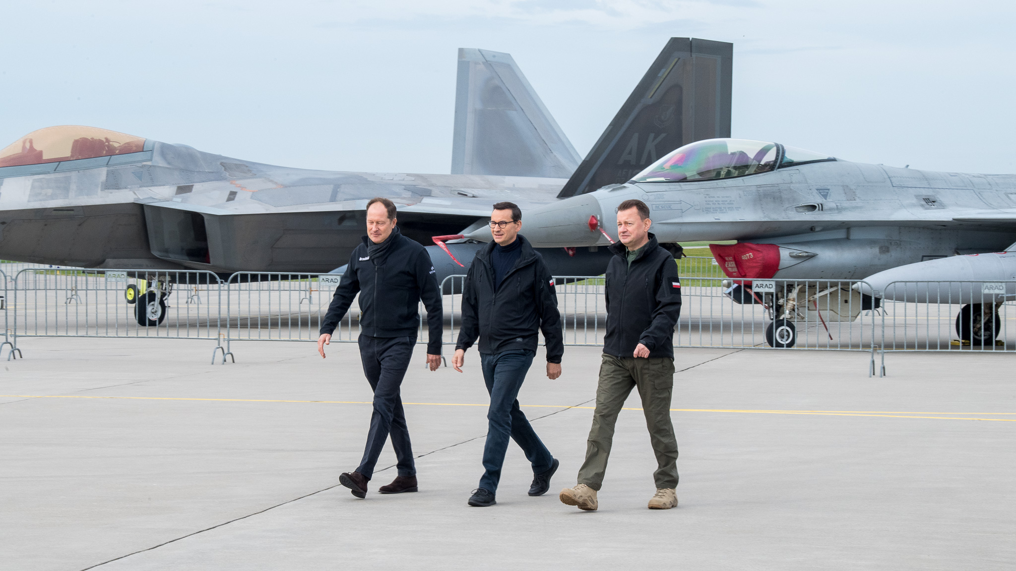 - To właśnie w Łasku żołnierze polskich i amerykańskich sił powietrznych ćwiczą wspólnie na co dzień, osłaniając niebo nad Polską. To jest praktyczny wymiar budowania interoperacyjności między polskimi i amerykański siłami zbrojnymi. Bardzo cenimy sobie obecność sił amerykańskich, w tym sił powietrznych, wyposażonych w nowoczesne samoloty F-22 Raptor. Obecność amerykańskich sił powietrznych, tu w Polsce, jest bardzo ważnym argumentem w polityce Sojuszu Północnoatlantyckiego, polityce polegającej na odstraszaniu ewentualnego agresora – powiedział wicepremier Mariusz Błaszczak po spotkaniu z polskimi i amerykańskimi pilotami w Łasku.