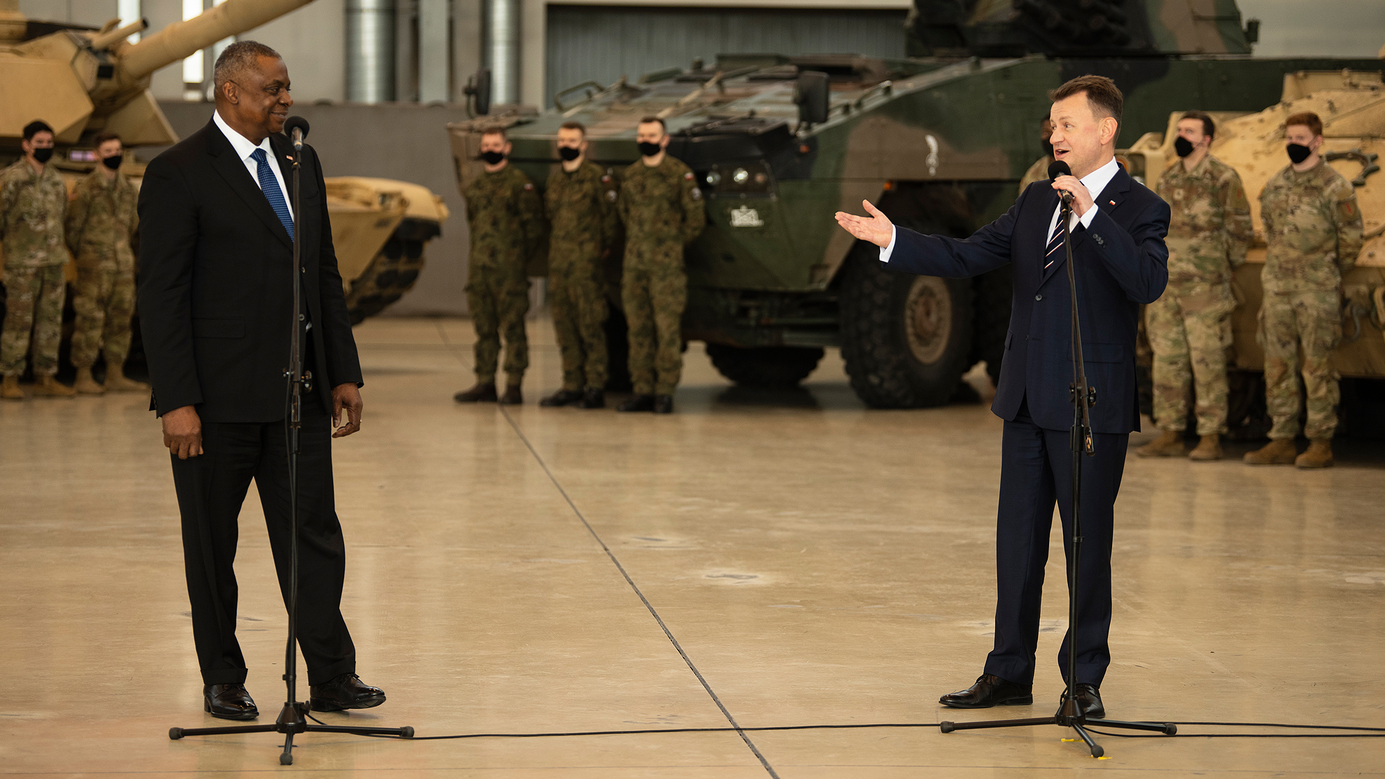 W piątek 18 lutego br. szef MON oraz przebywający z wizytą dyplomatyczną w Polsce sekretarz obrony L. Austin spotkali się z polskimi i amerykańskimi żołnierzami w 33. Bazie Lotnictwa Transportowego.