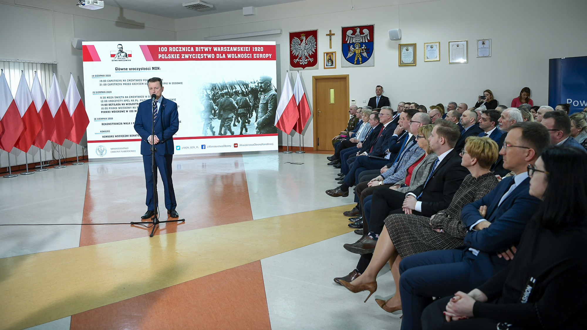 W środę 26 lutego br. w Starostwie Powiatowym w Wołominie minister Mariusz Błaszczak przedstawił szczegóły dotyczące programu obchodów setnej rocznicy Bitwy Warszawskiej oraz ogłosił konkurs dla partnerów społecznych na upamiętnienie tego wydarzenia.