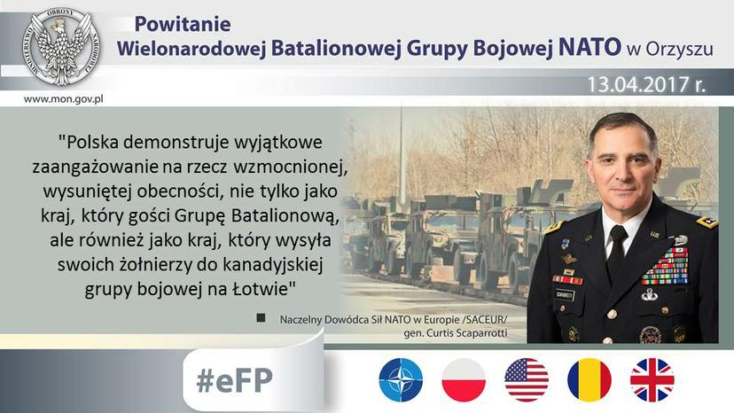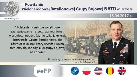 O wyraźnej solidarności i determinacji mówił gen. Curtis Scaparrotti. – Rozmieszczenie żołnierzy Batalionowej Grupy Bojowej NATO w Polsce to dowód na spójność i determinację Sojuszu oraz jasny sygnał dla potencjalnych agresorów. (…) Fakt, że sojusznicy z różnych krajów pracują w ramach wzmocnionej, wysuniętej obecności, jest dowodem na zaangażowanie sojuszu na rzecz art. 5 Traktatu Waszyngtońskiego, który zawiera zasadę, że atak przeciwko jednemu z sojuszników, jest traktowany jak atak na nich wszystkich – powiedział Naczelny Dowódca Sił NATO w Europie gen. Curtis Scaparrotti.