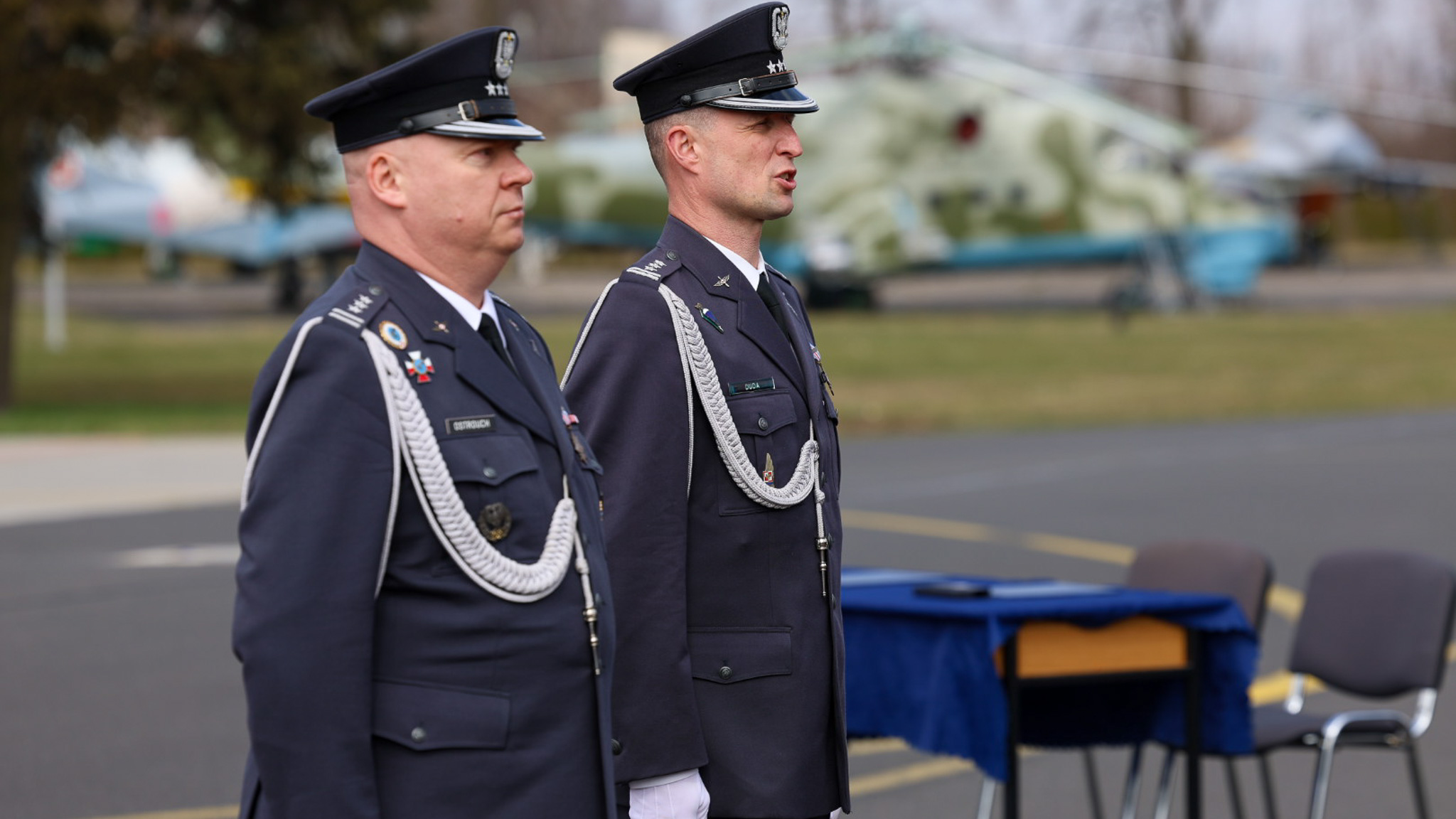 Dotychczasowy dowódca, płk pil. Piotr Ostrouch, przekazał swoje obowiązki płk pil. Krzysztofowi Dudzie, który od dziś obejmuje dowodzenie bazą. Płk Ostrouch awansował na stanowisko zastępcy dowódcy 2. Skrzydła Lotnictwa Taktycznego.