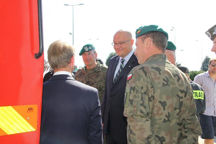 W środę w Brusach wiceminister Bartłomiej Grabski w obecności szefa Inspektoratu Wsparcia SZ gen. bryg. Dariusza Łukowskiego, przedstawicieli władz samorządowych oraz mieszkańców przekazał na ręce burmistrza Brus Witolda Ossowskiego kluczyki do dwóch samochodów ratowniczo-gaśniczych.