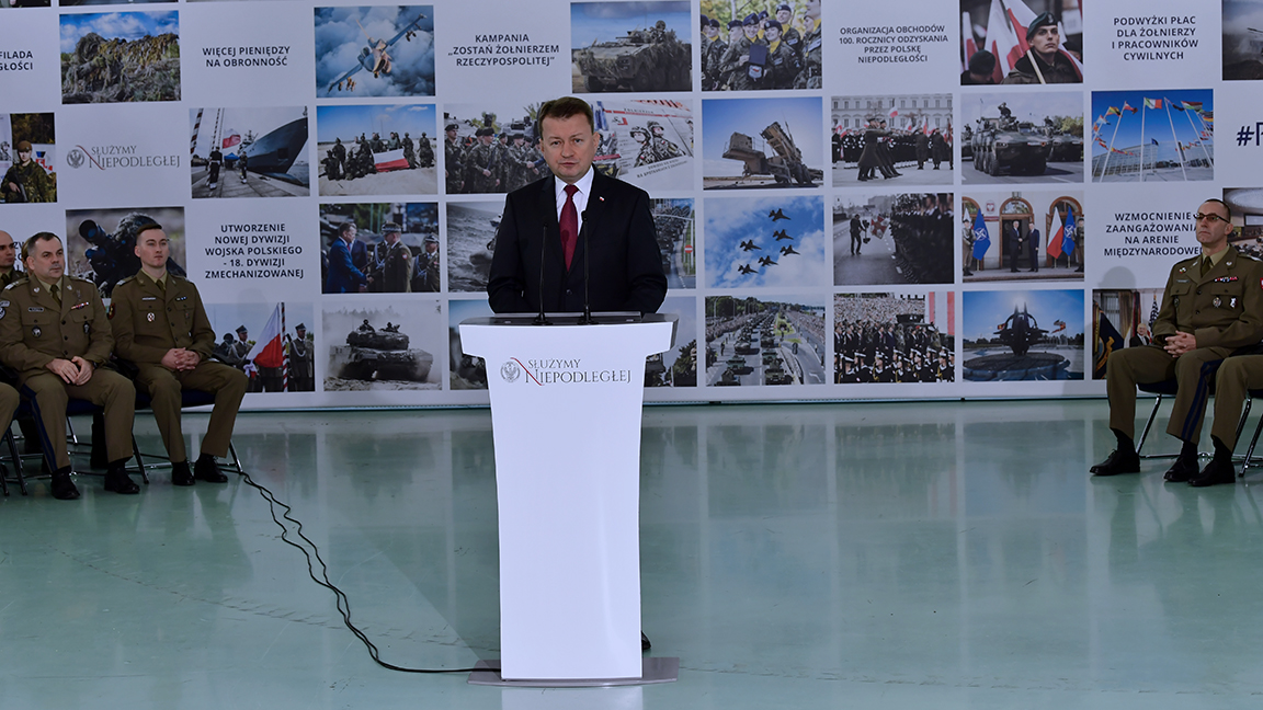 - To niezwykły zaszczyt, że mogę pełnić funkcję ministra obrony narodowej, w tym wyjątkowym roku, w stulecie odzyskania przez Polskę Niepodległości. To głównie dzięki waleczności żołnierzy, dziś żyjemy w wolnym i niepodległym kraju. (…) To właśnie nam, Ministerstwu Obrony Narodowej, powierzono zorganizowanie wielkiego Biało-czerwonego marszu „Dla Ciebie Polsko”. Ulicami Warszawy przeszło ponad 250 tysięcy osób. Tysiące Polaków wzięło udział w zorganizowanych przez MON piknikach pod hasłem „Służymy Niepodległej” w 17 miastach –powiedział minister przypominając udział wojska w organizacji centralnych uroczystościach z okazji setnej rocznicy odzyskania niepodległości przez Polskę.