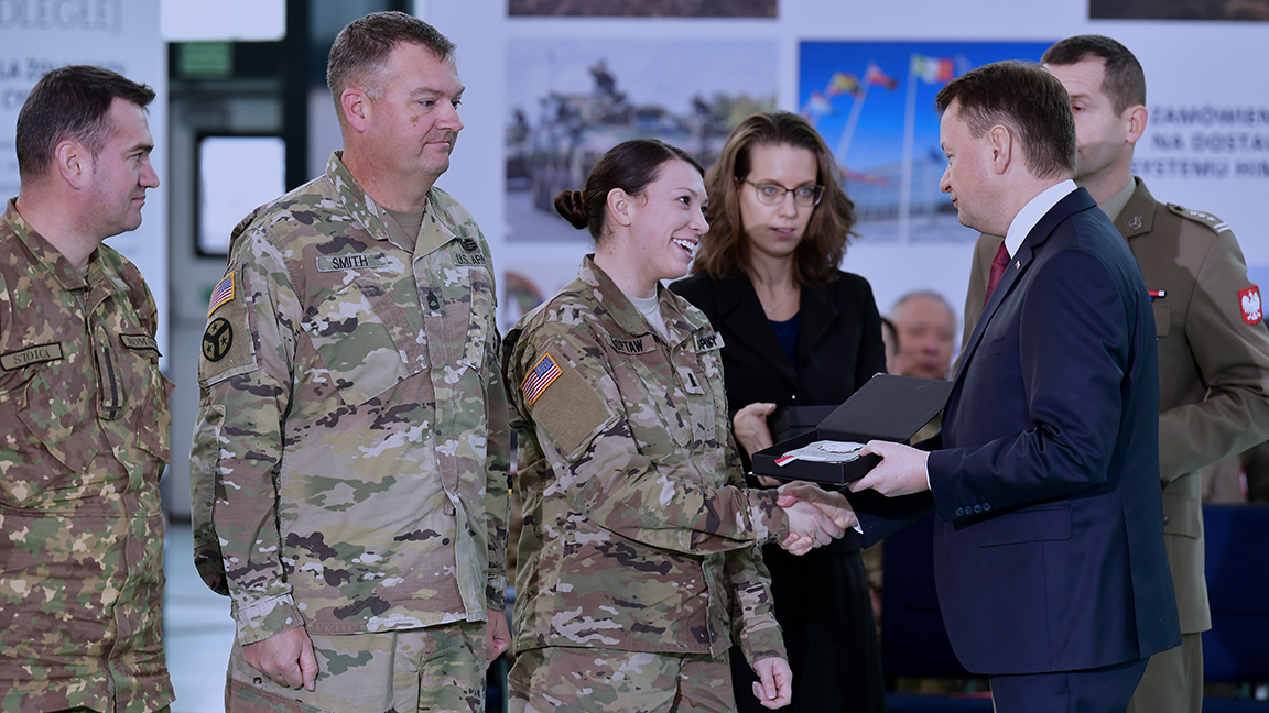 Szef MON podziękował także żołnierzom państw sojuszniczych za ich służbę i wręczył pamiątkowe plakiety.