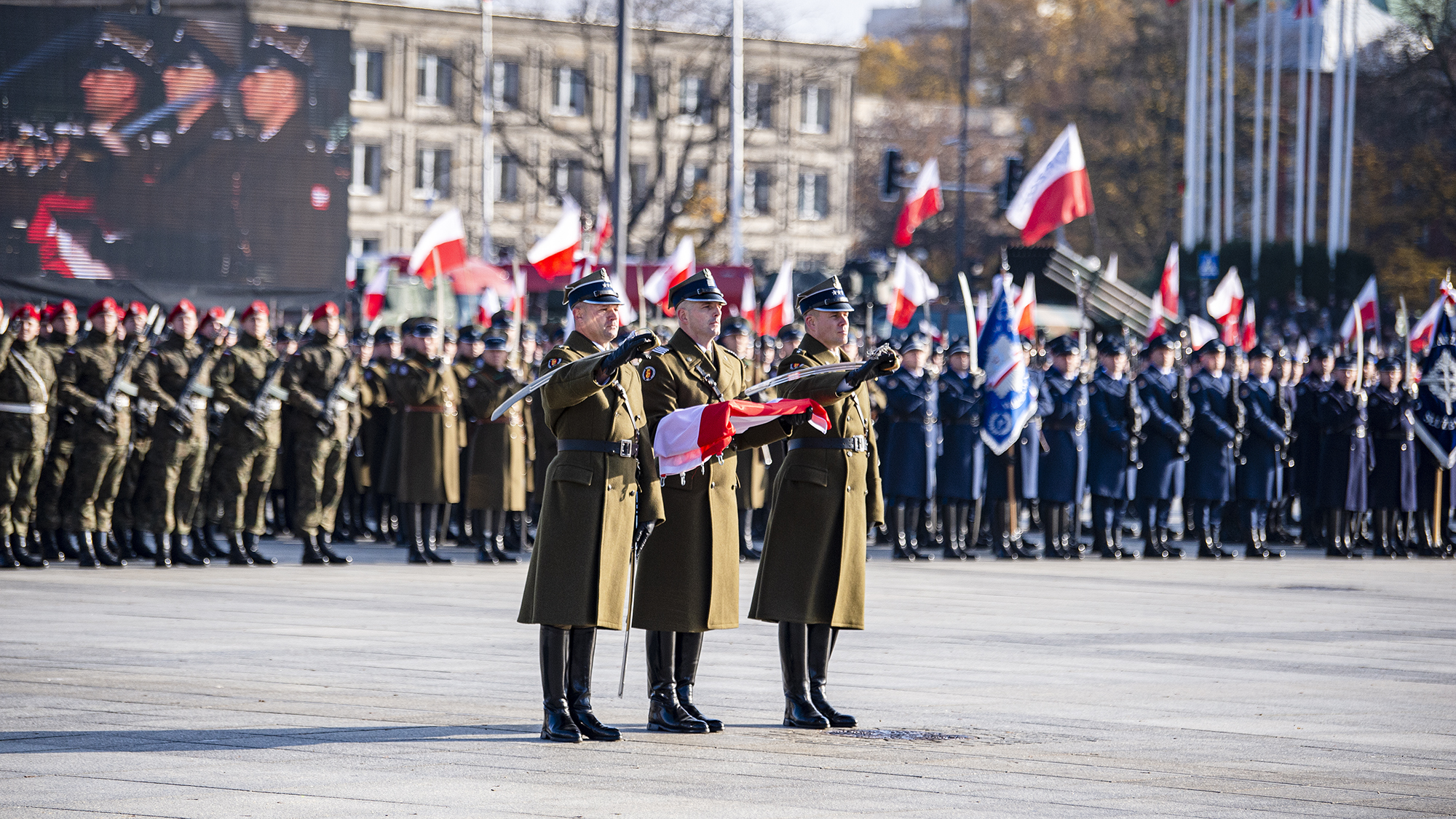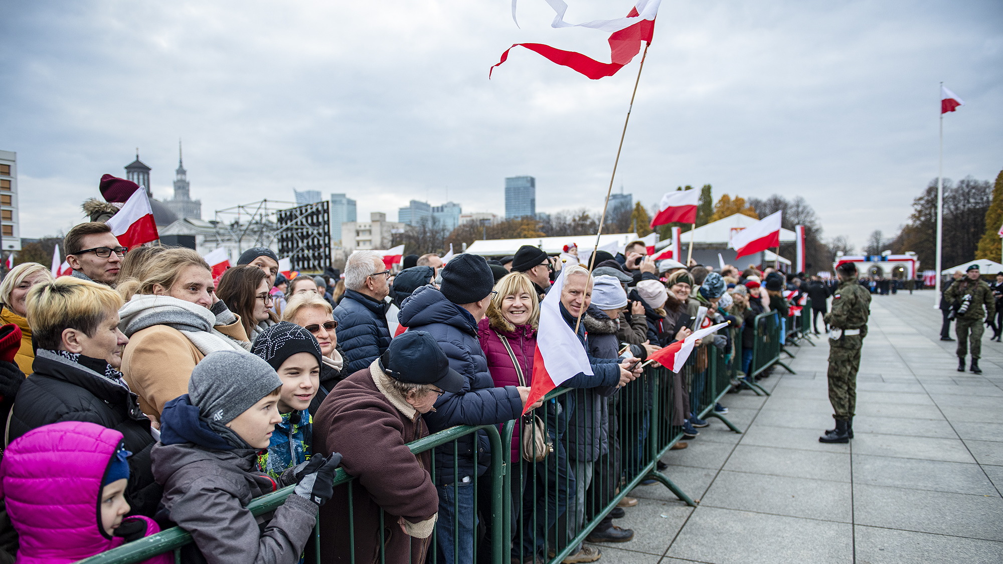 - Kiedy patrzymy na stojących tutaj dzielnych polskich żołnierzy, jak lśni polska broń, kiedy nad nimi łopoczą biało – czerwone sztandary przyniesione przez szczęśliwych i uśmiechniętych rodaków, kiedy patrzymy jak spogląda na to ze swojego postumentu Marszałek Józef Piłsudski, na Grób Nieznanego Żołnierza, grób symboliczny jego legionistów, kiedy patrzymy na 101 lat od odzyskania niepodległości i na wcześniejsze 123 lata rozbiorów i walkę pokoleń o odzyskanie wolności, potem na II Rzeczpospolitą i jej upadek, na zdradę i sowieckie zniewolenie i na to zwycięstwo, to bezkrwawe sprzed trzydziestu lat i wreszcie na naszą dzisiejszą Polskę, to chce się powiedzieć, jak mówią historycy, że dzisiejsza Polska to najbardziej wolna, najzamożniejsza i najbezpieczniejsza Polska od XVII wieku - powiedział w przemówieniu na Placu Marszałka Józefa Piłsudskiego prezydent Andrzej Duda, zwierzchnik Sił Zbrojnych.