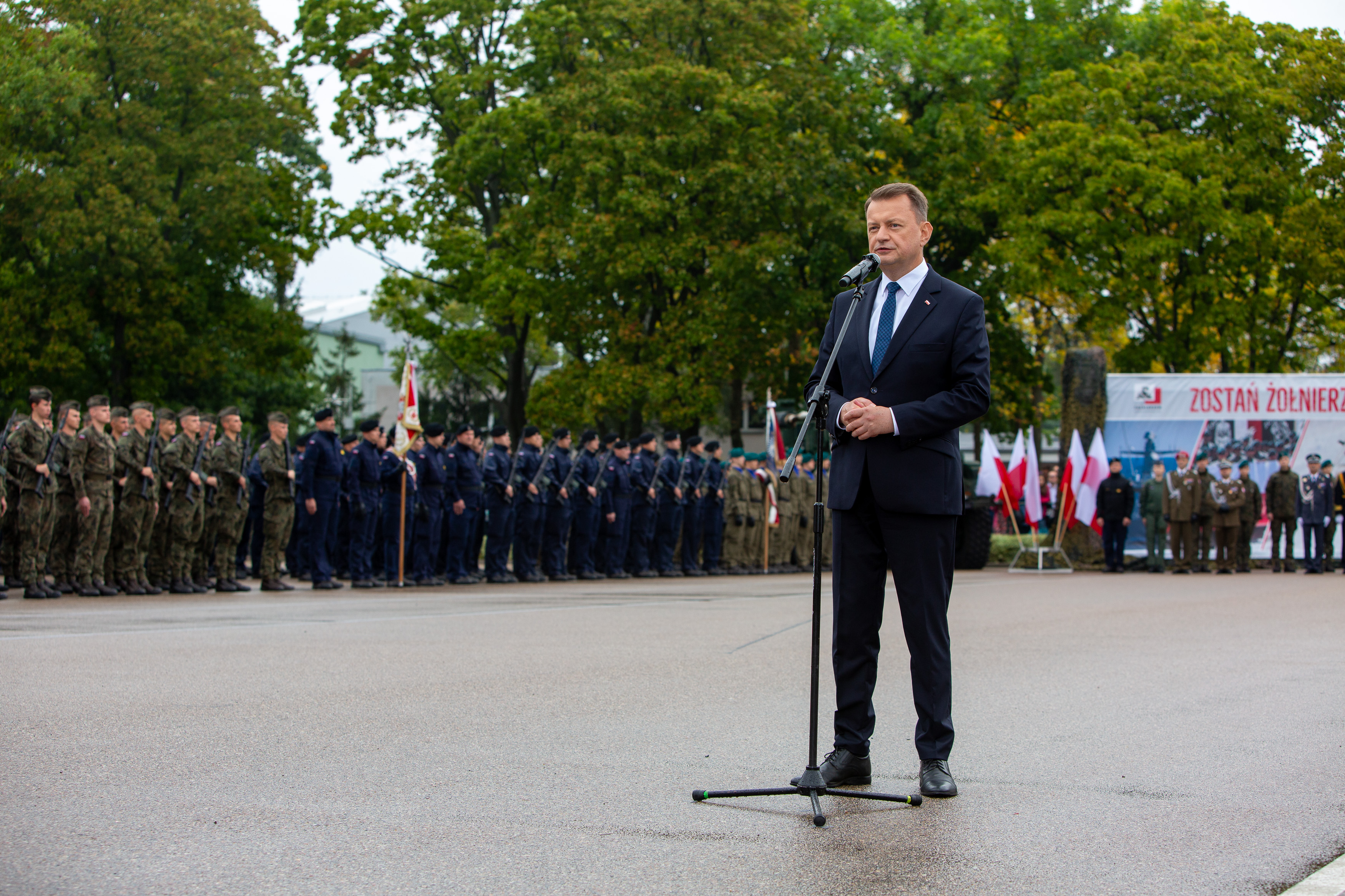- Już od tej chwili żołnierze Wojska Polskiego. 1800 żołnierzy przed chwila złożyło przysięgę. Słyszeli państwo moc. Moc tych przysięg składanych osobiście przez 1800 żołnierzy. Kiedy rozmawiałem z komendantami - rektorami mówili, że to wydarzenie historyczne. Byliśmy tego wydarzenia świadkami. Nigdy w historii Wojska Polskiego tyłu przyszłych oficerów nie składało przysięgi jednocześnie. To bardzo dobry znak. To bardzo dobry sygnał mówiący o tym, że Wojsko Polskie jest coraz silniejsze - powiedział Mariusz Błaszczak, minister obrony narodowej podczas przysięgi wojskowej.