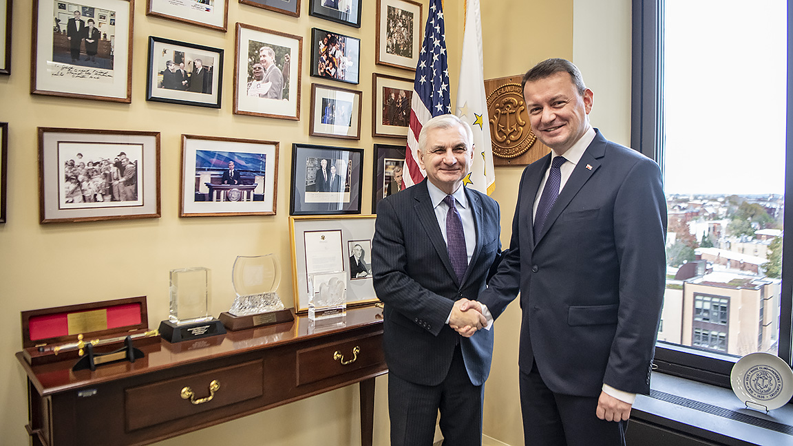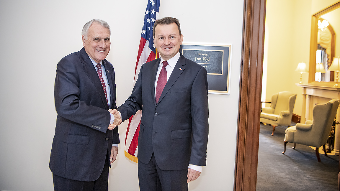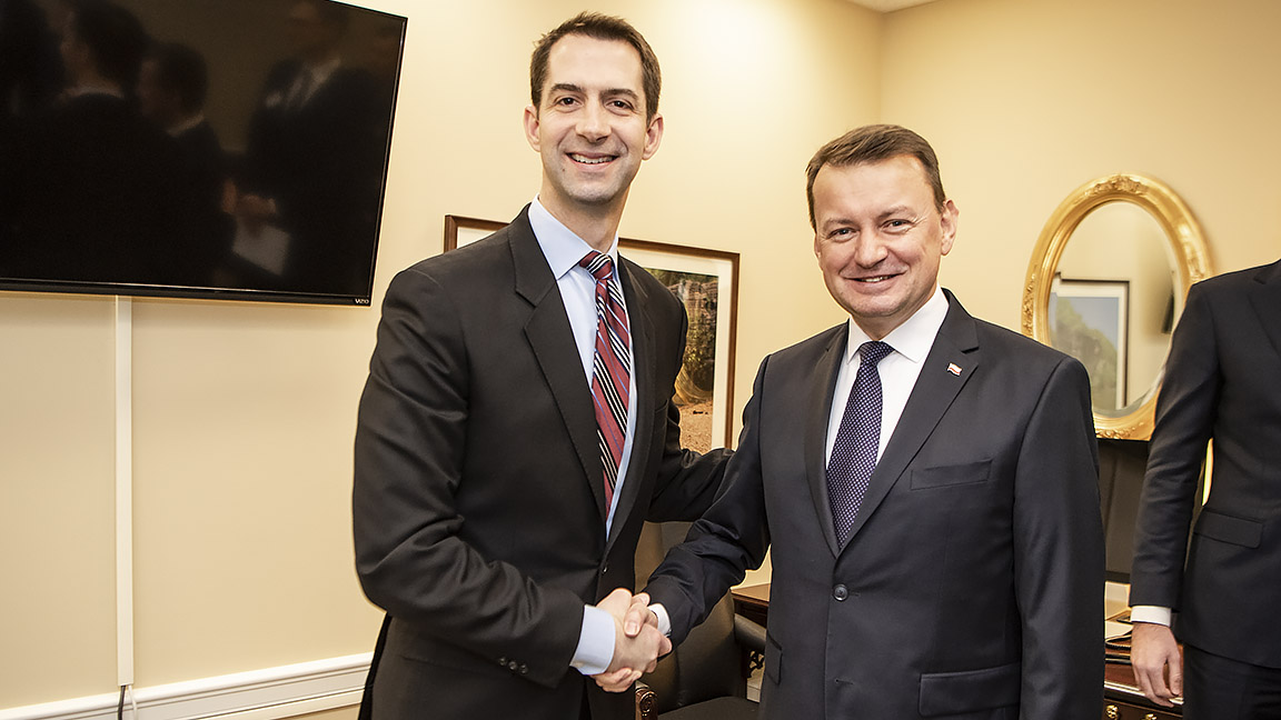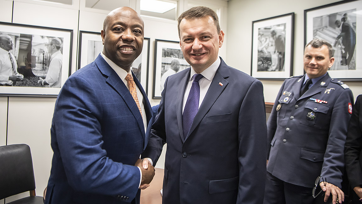 14 listopada szef MON spotkał się w Waszyngtonie z senatorami: republikanami Danem Sullivanem, Tomem Cottonem i Timem Scottem oraz Johnem Reedem z Partii Demokratycznej. Minister Błaszczak regularnie spotyka się z amerykańskimi politykami i przekonuje ich do poparcia projektu wzmocnienia obecności wojsk USA w Polsce. Środa była kolejnym dniem rozmów z amerykańską administracją na temat stałej obecności wojsk USA w Polsce.